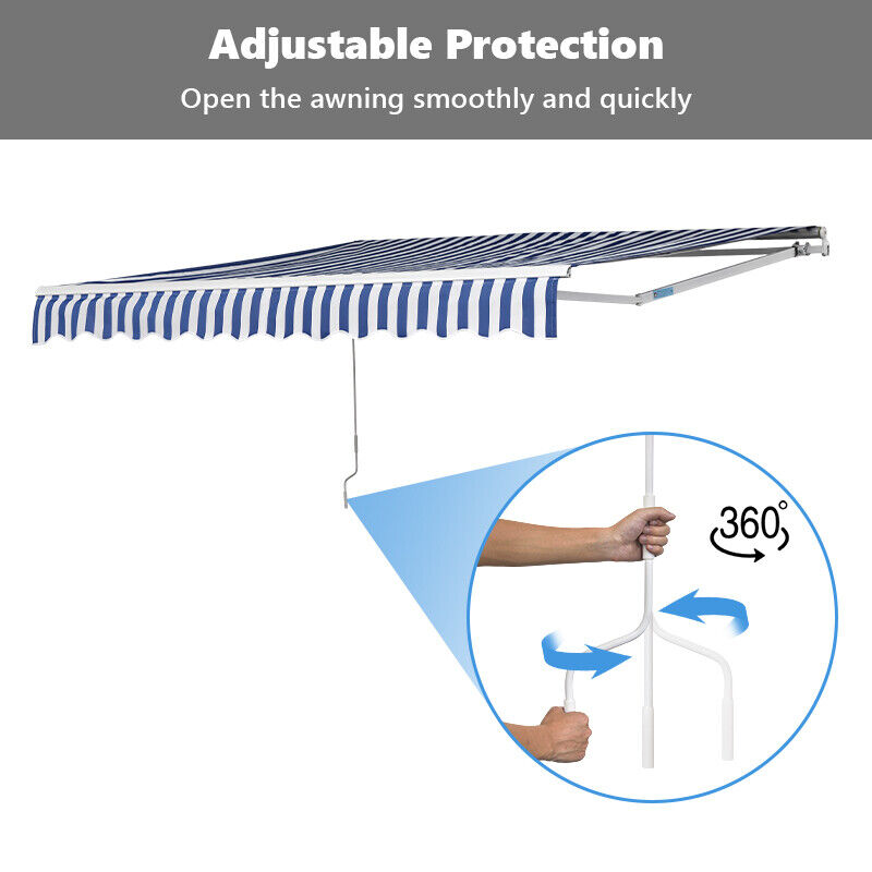 Awning Manual Outdoor Garden Canopy Patio Sun Shade Shelter Blue White 200X150CM