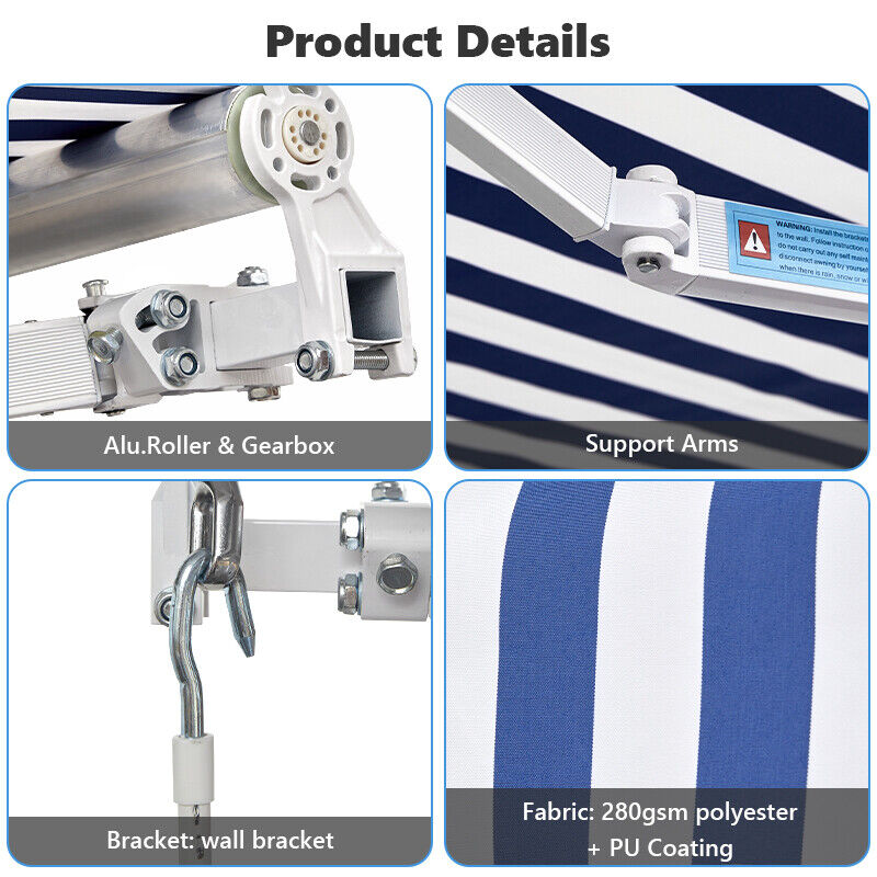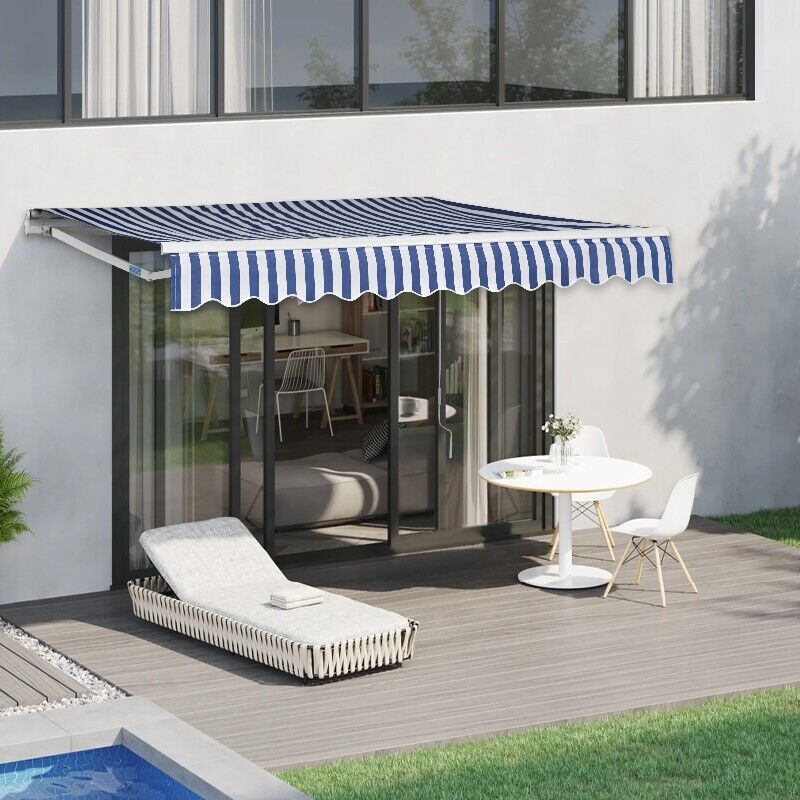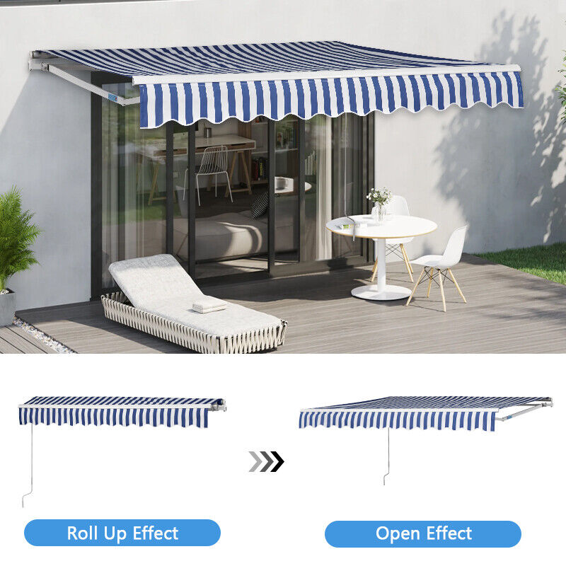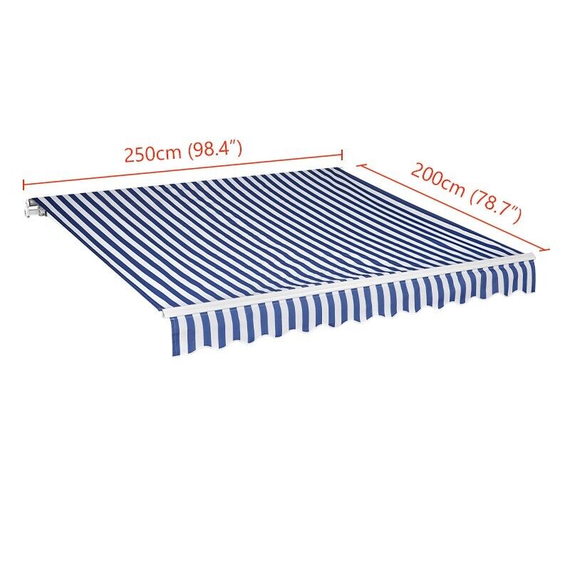 Awning Manual Outdoor Garden Canopy Patio Sun Shade Shelter Blue White 250X200CM