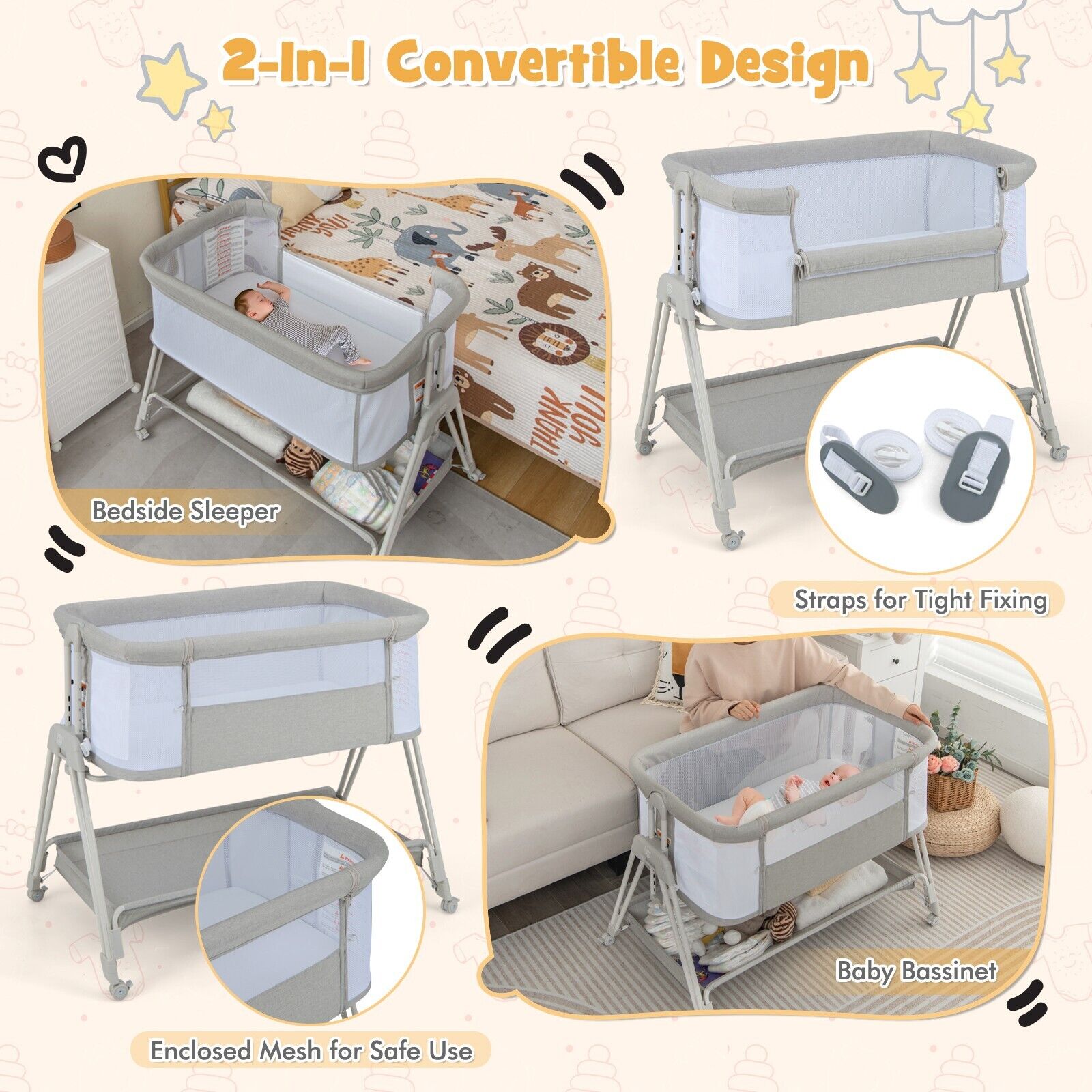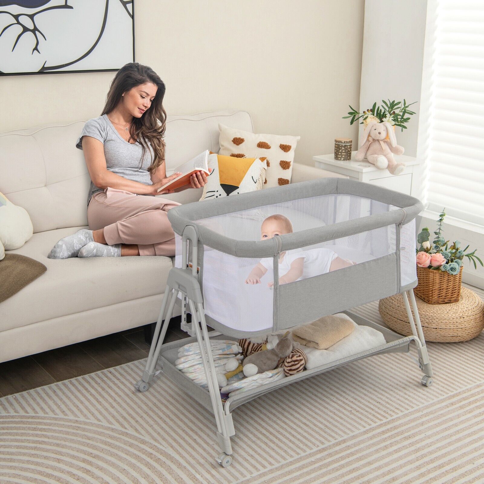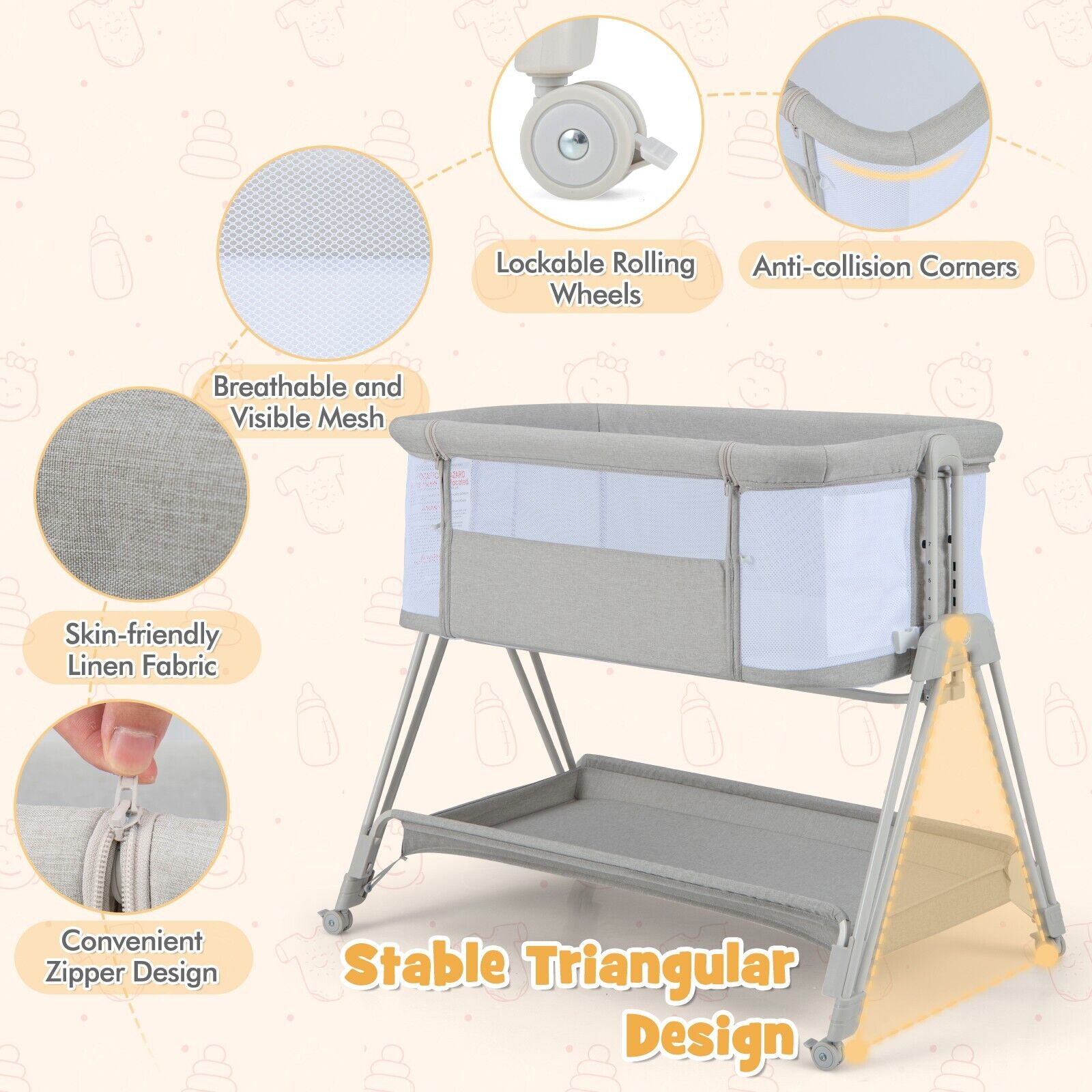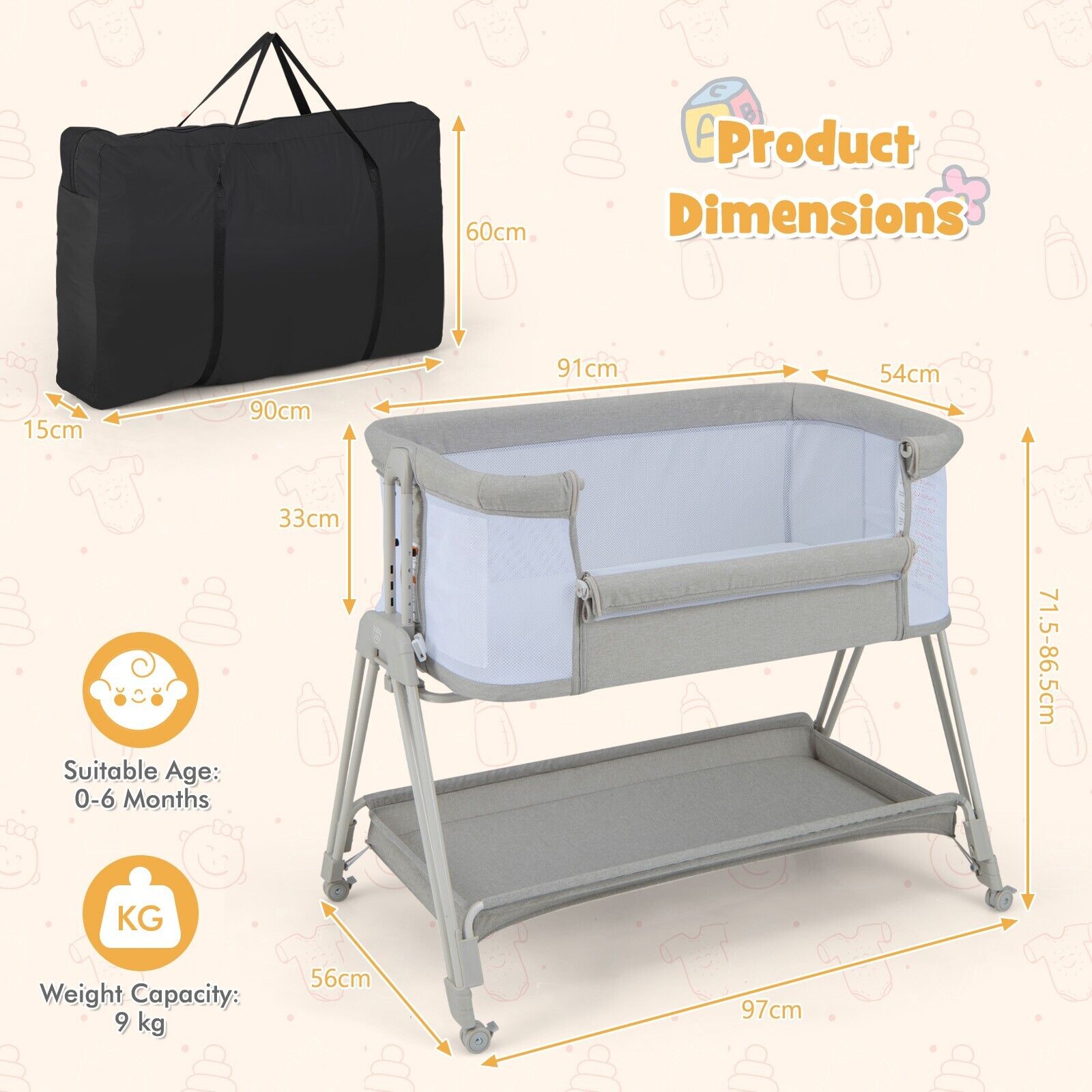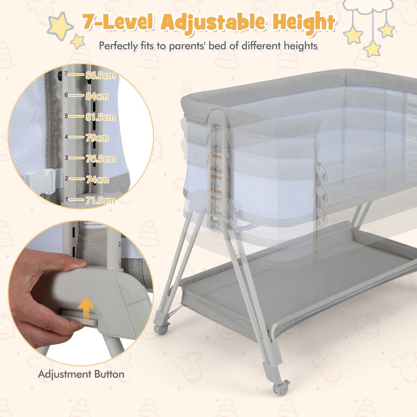 Baby Bedside Crib Folding Sleeper Bassinet Cot Bed Portable 7 Adjustable Heights