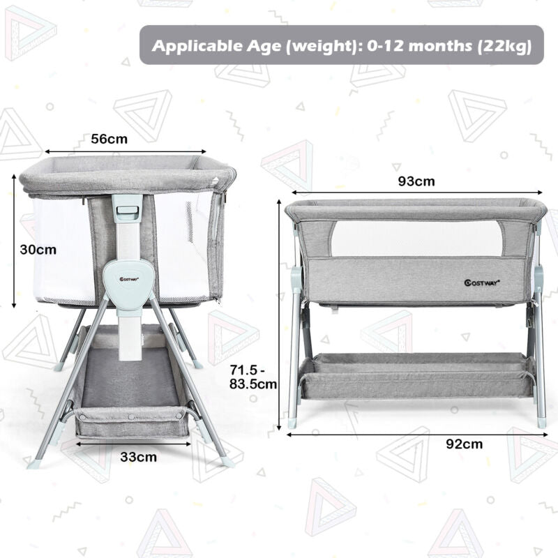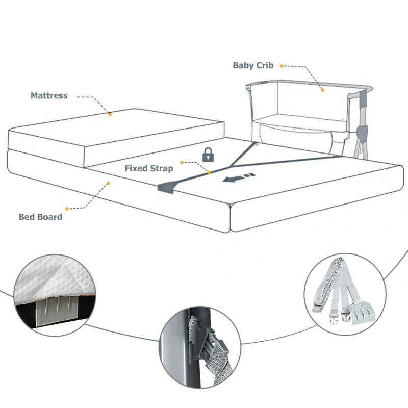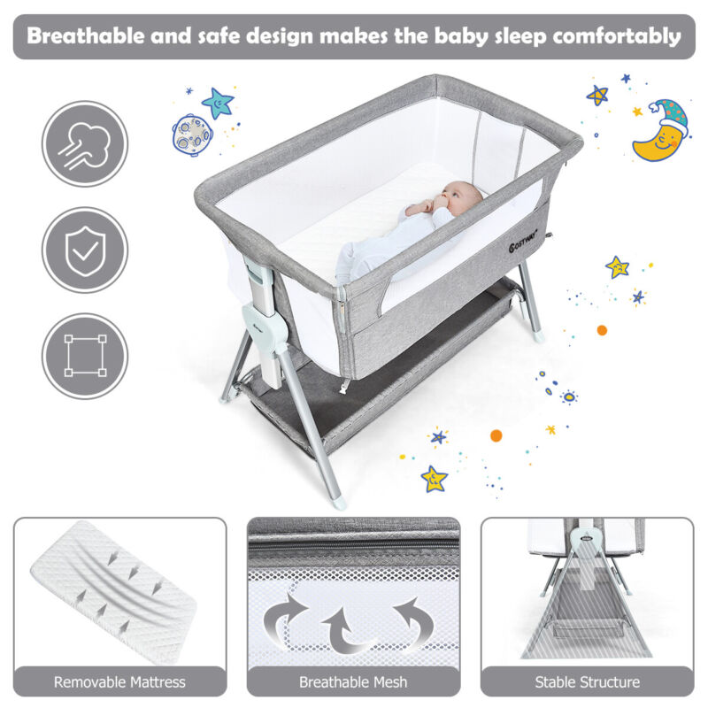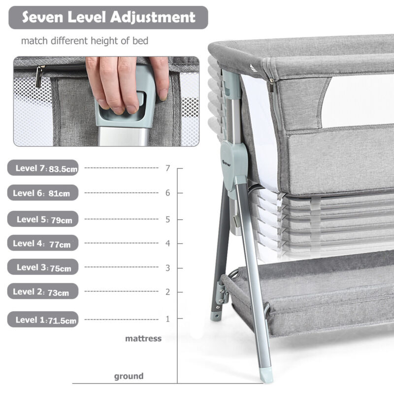 Baby Bedside Crib Portable Travel Cot Bed Mattress Mesh Co-sleeping with Wheels