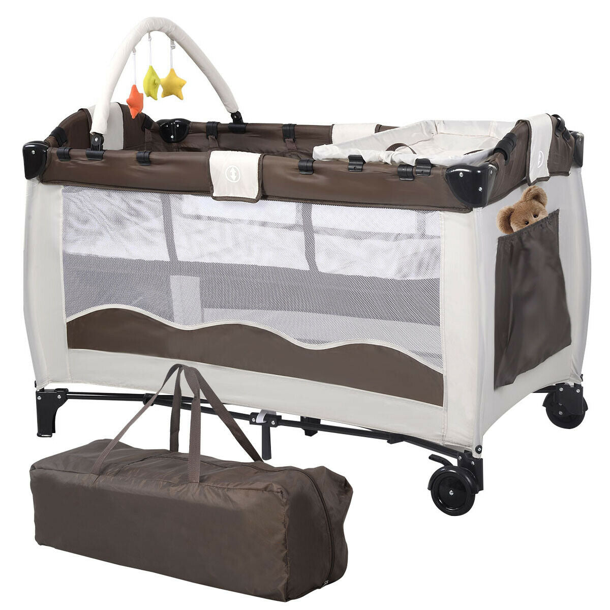 Baby Crib Foldable Playpen Portable Playard Changing Table Infant Bassinet Bed