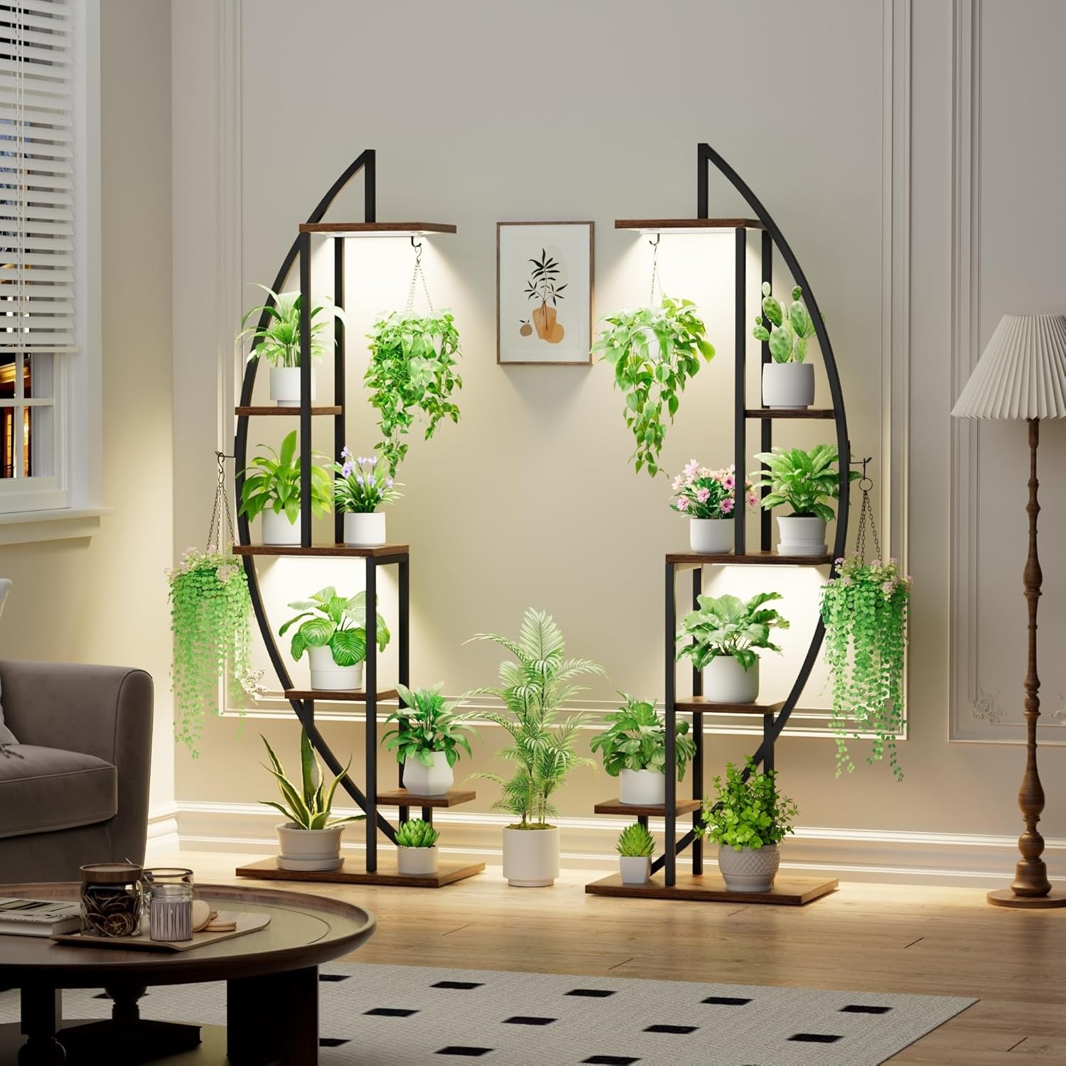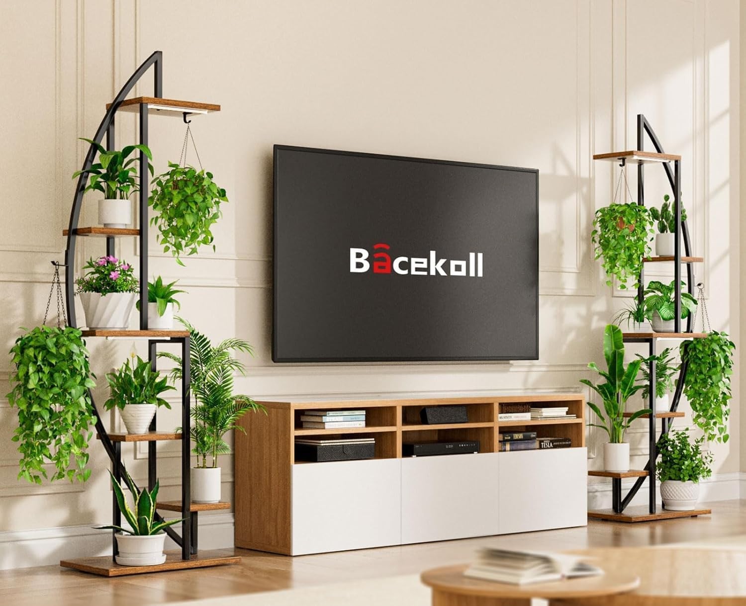 BACEKOLL Plant Stand Indoor with Grow Lights, 6 Tiered Tall Plant Shelf, Metal