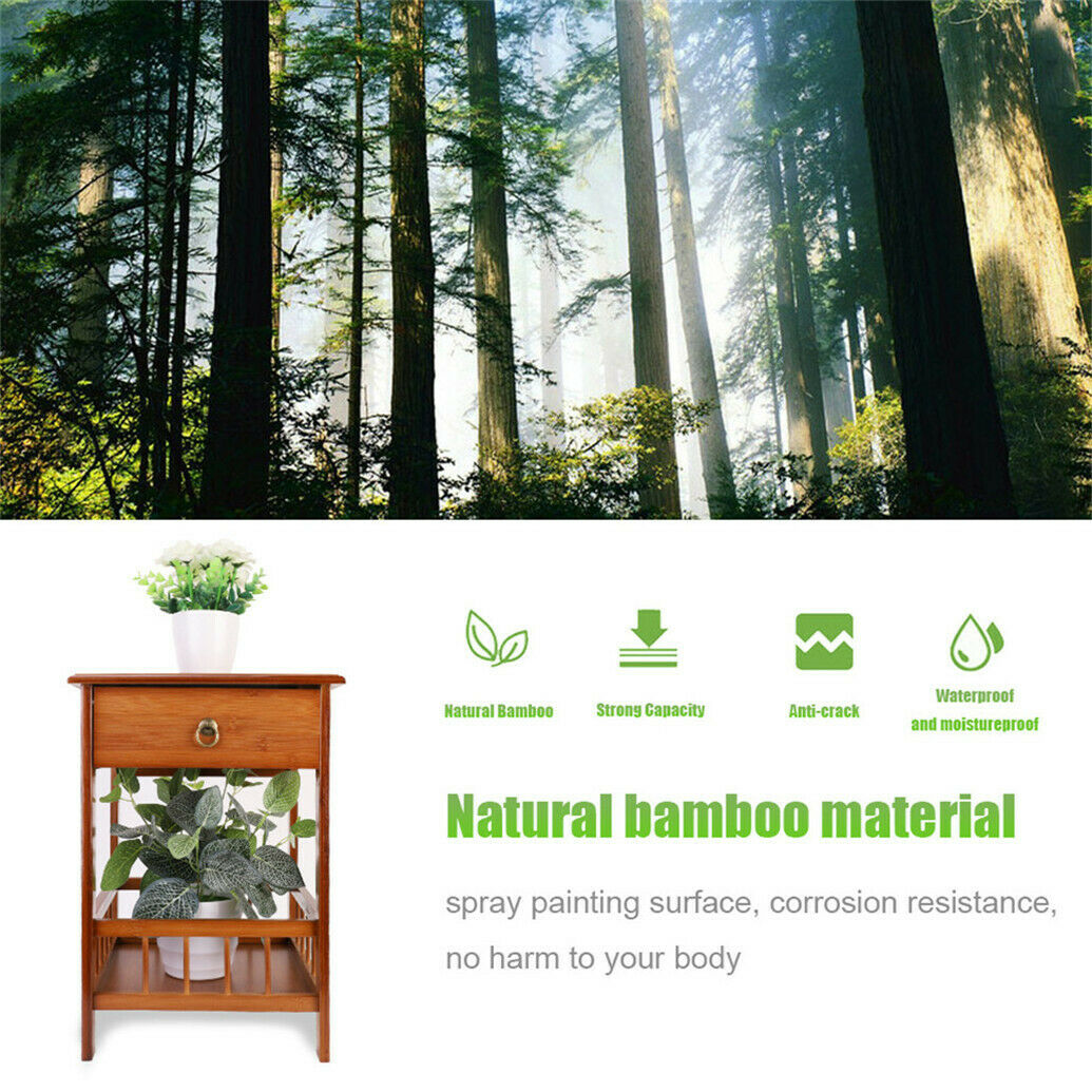 Bamboo 1 Drawer Side Cabinet Wooden Bedside Table Cabinet Storage Chest Shelf