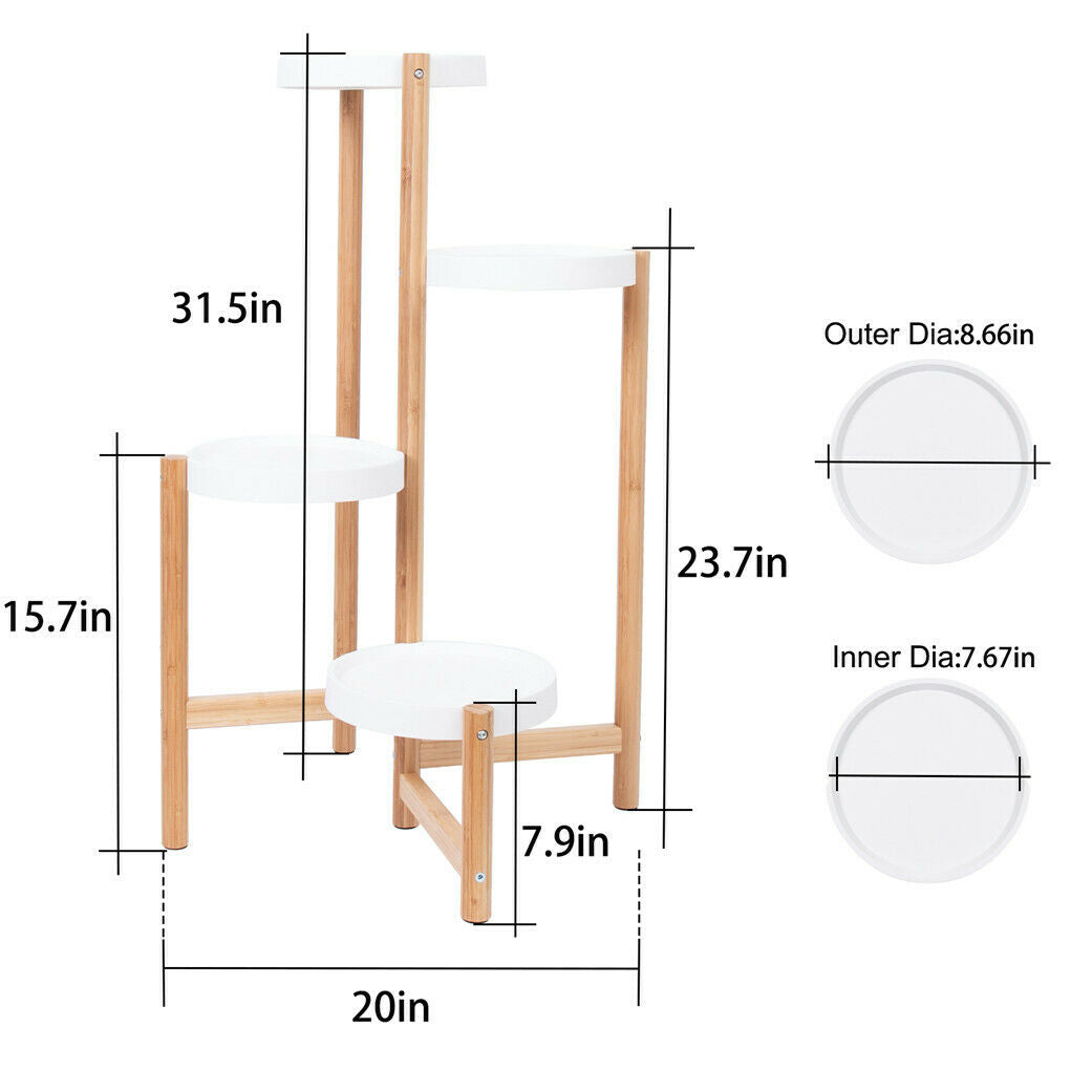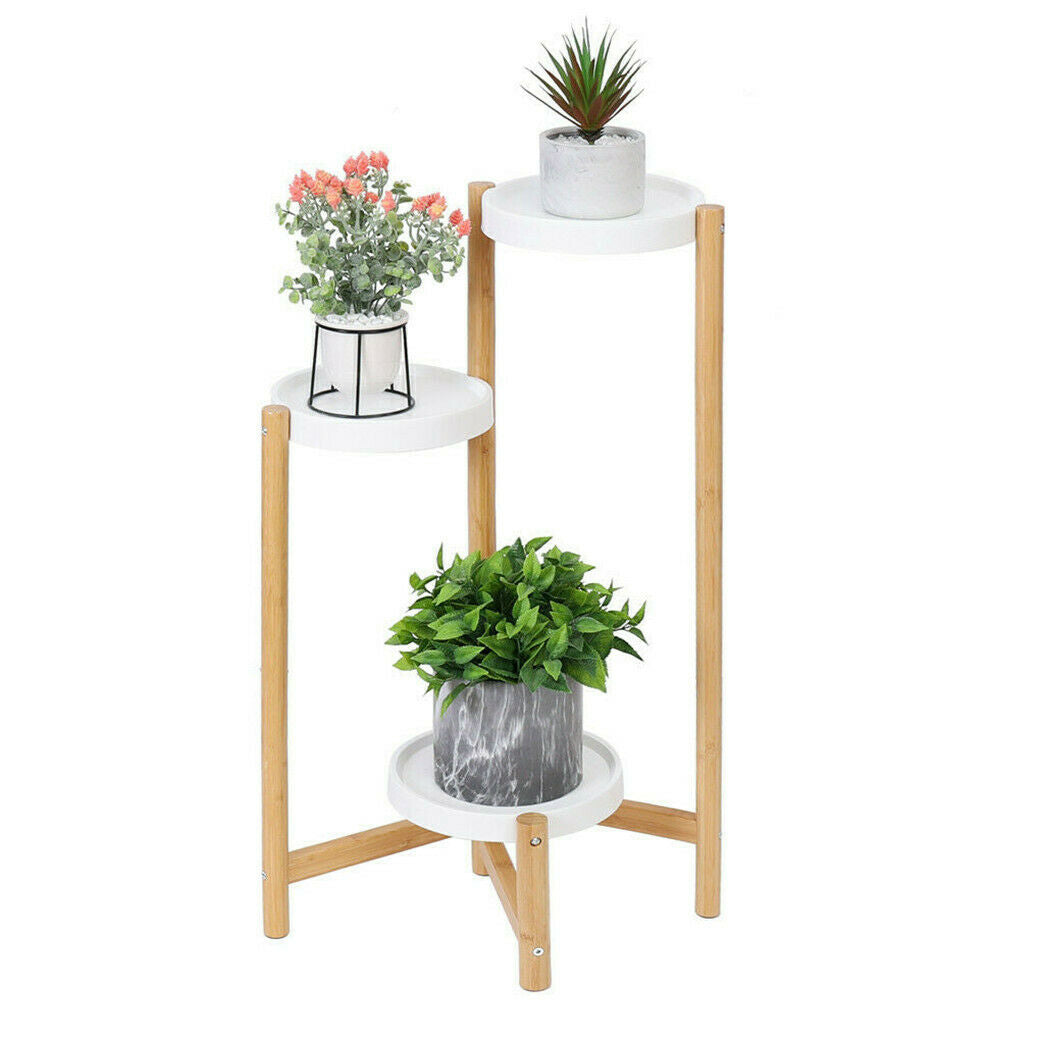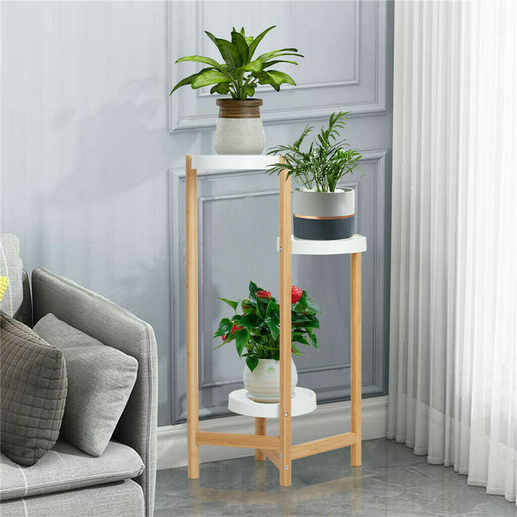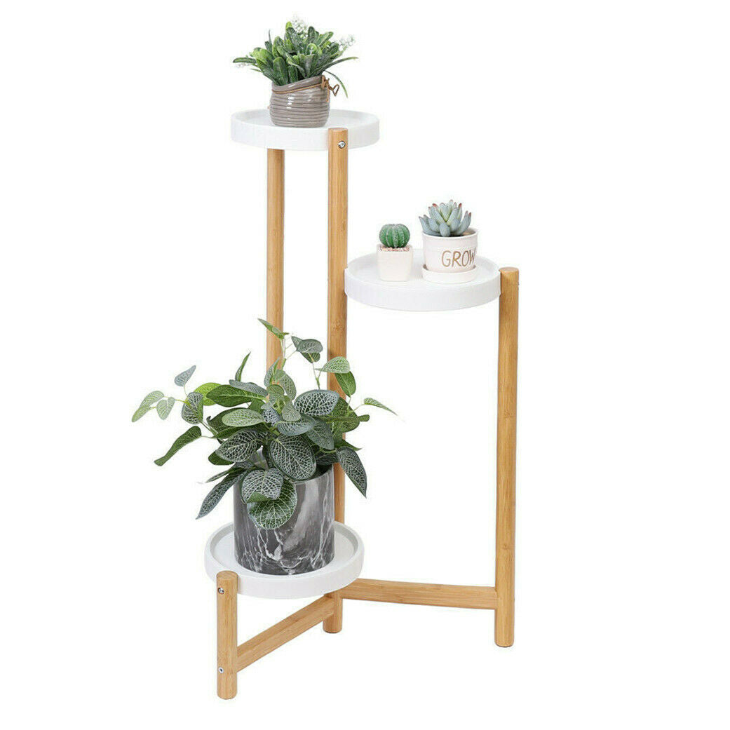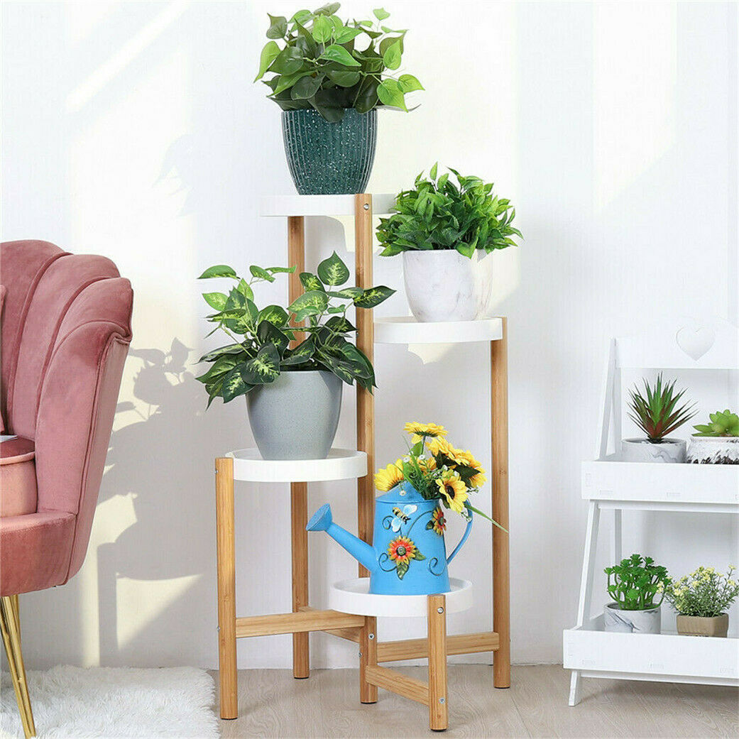 Bamboo 3/4 Tier Plant Stand Outdoor Indoor Tripod Flower Pots Rack Garden Shelf