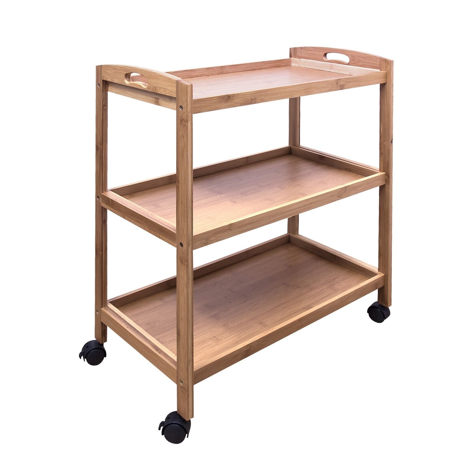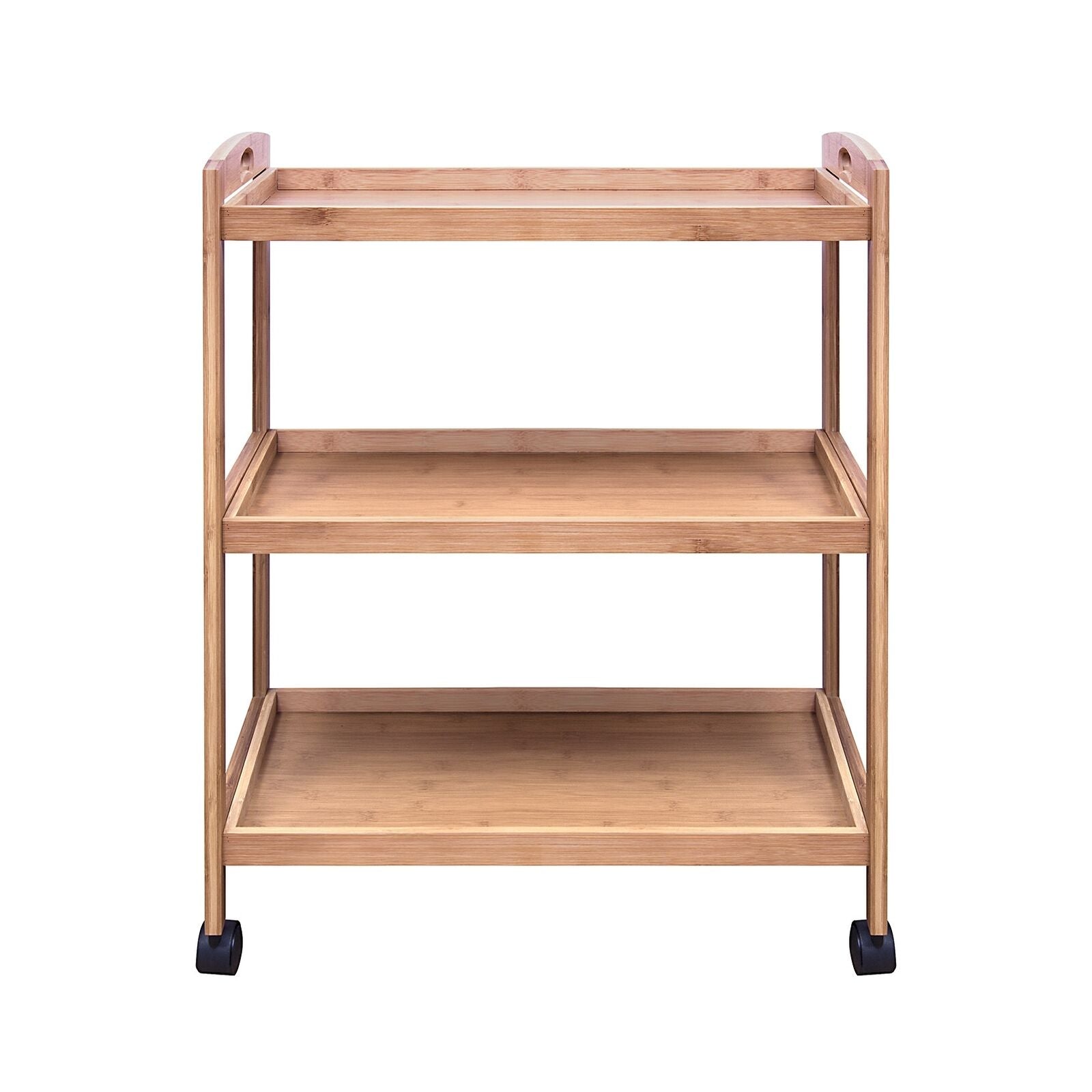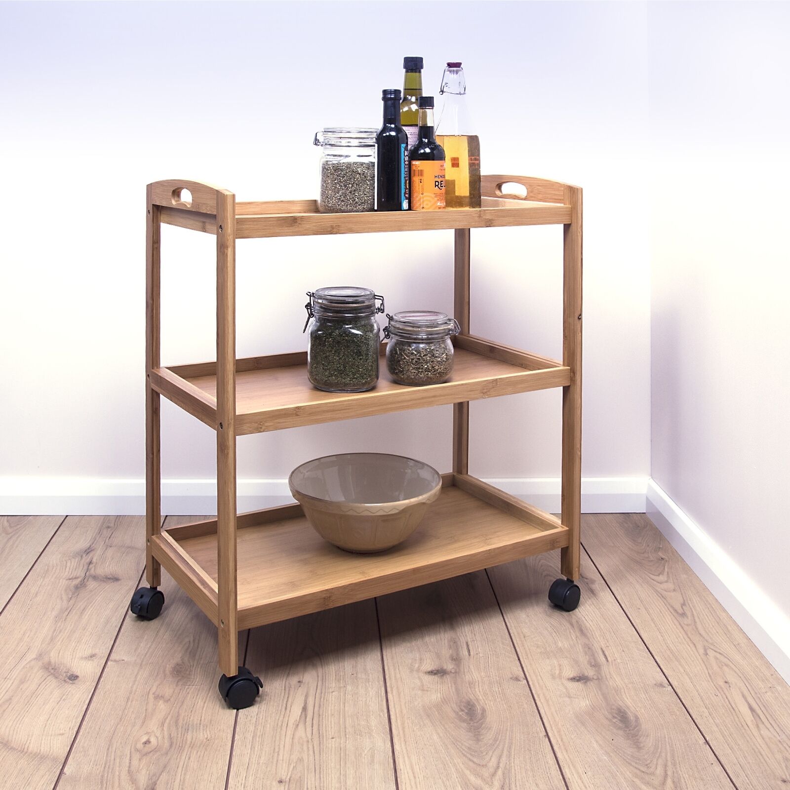 Bamboo 3 Tier Kitchen Storage Rack Serving Trolley Island Cart With Wheels