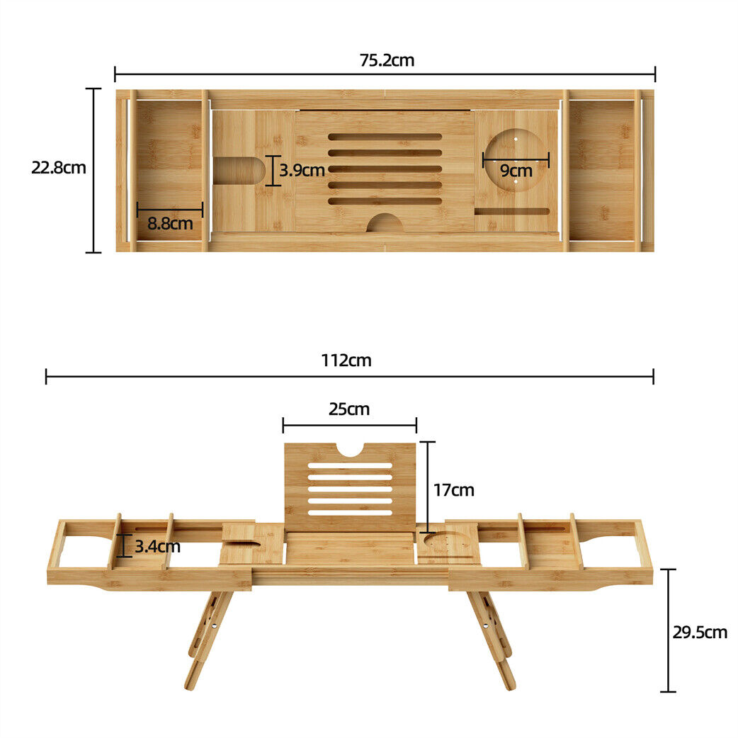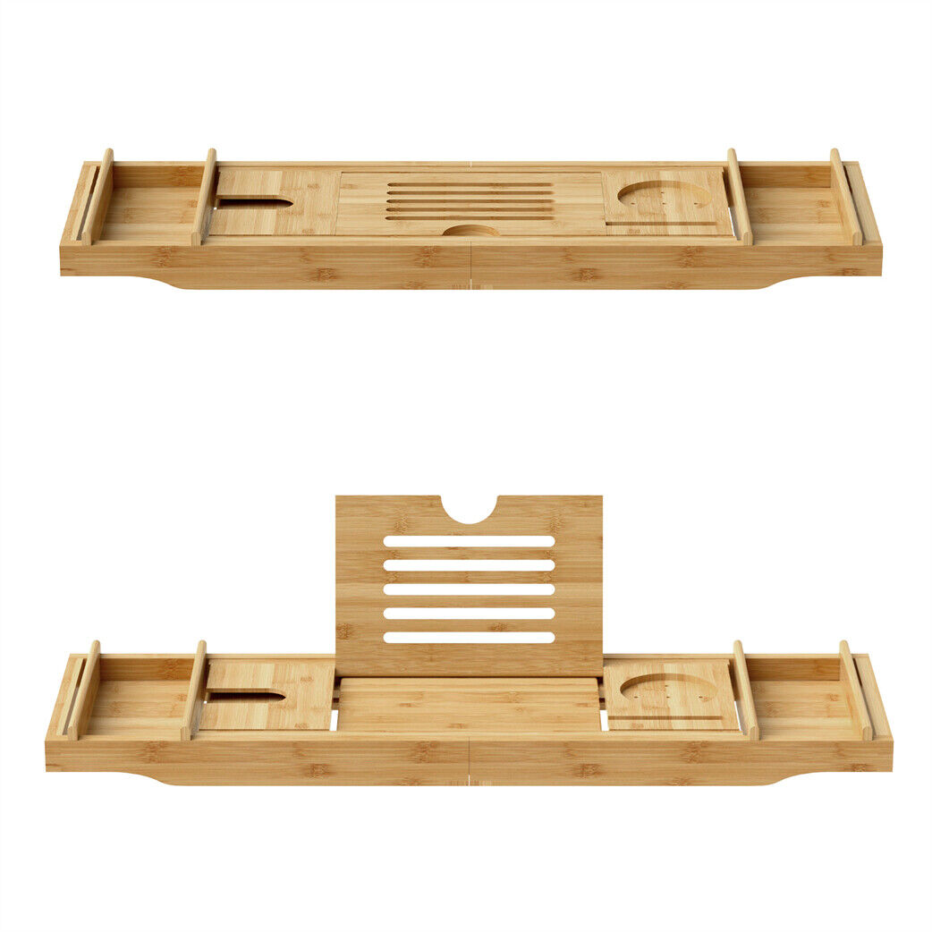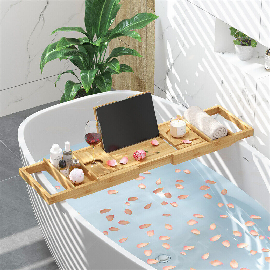 Bamboo Bath Tub Tray Extendable Caddy Rack with iPad Stand and Wine Glass Holder
