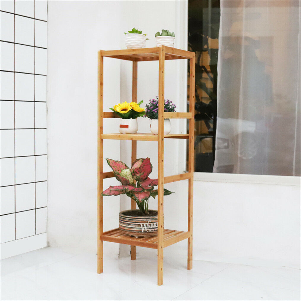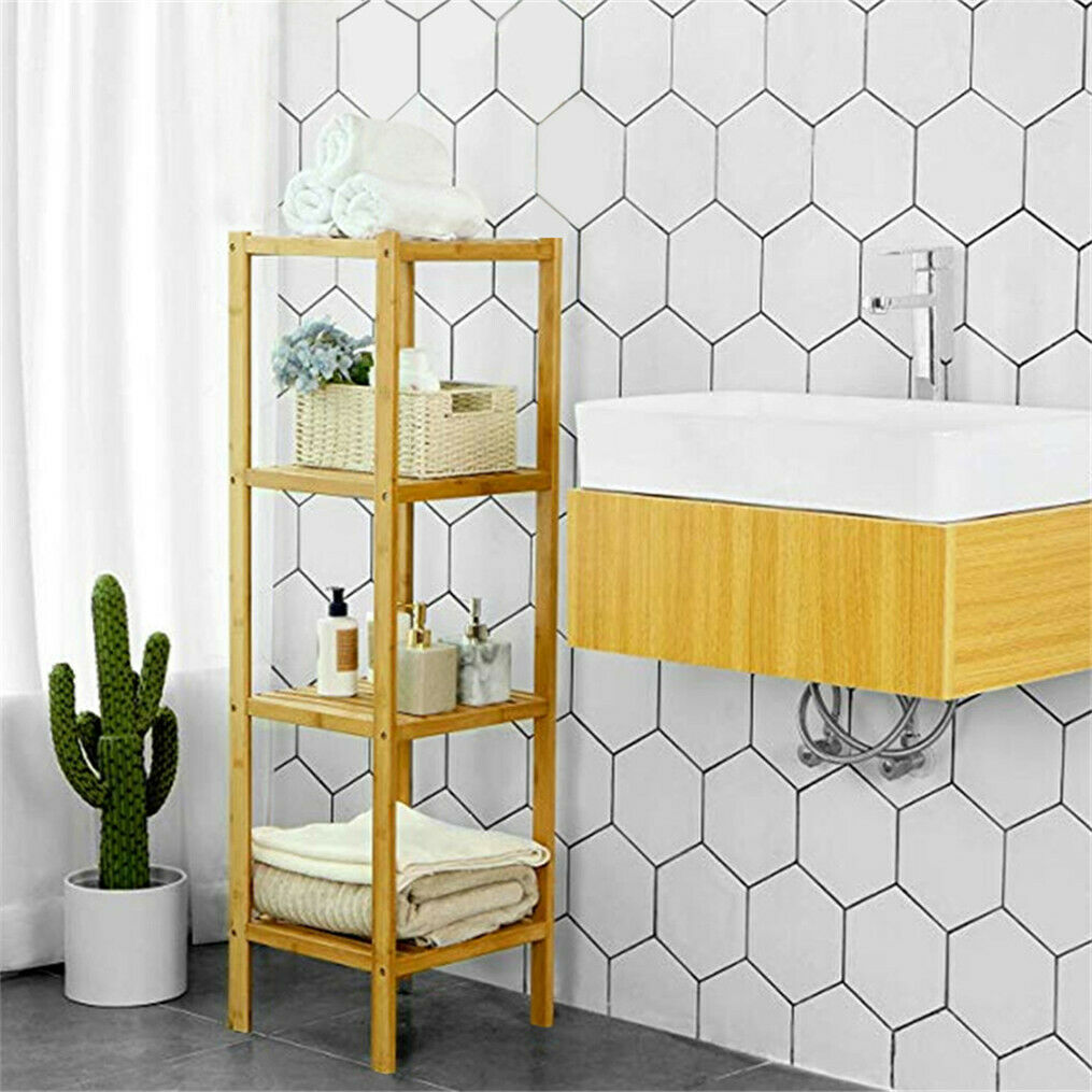 Bamboo Bathroom Shelf with 4 Tiers 110 x 36 x 33 cm Free-Standing Shelving Unit