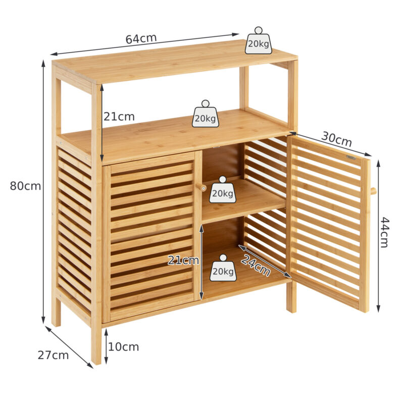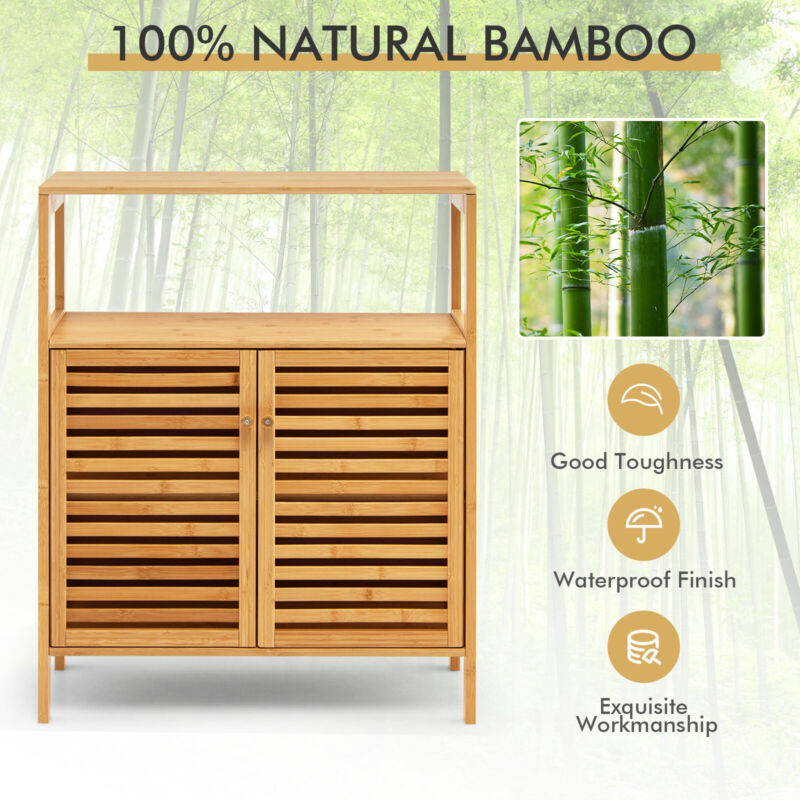 Bamboo Bathroom Storage Cabinet Freestanding Storage Organizer Double Doors