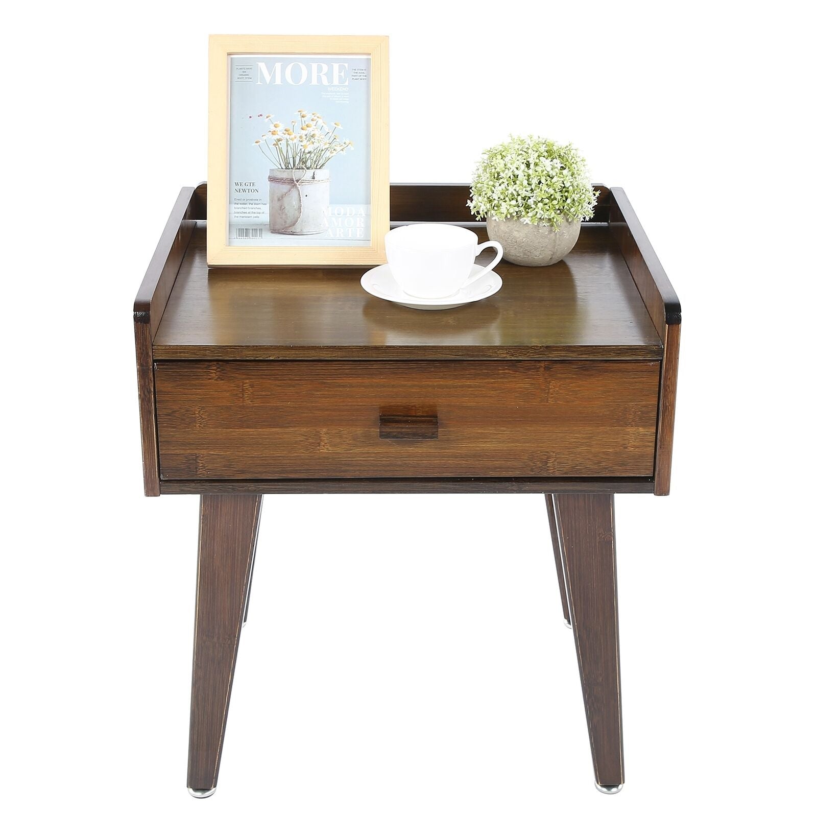 Bamboo Bedside Table With Small Drawers Night Stand Cabinet Storage Furniture