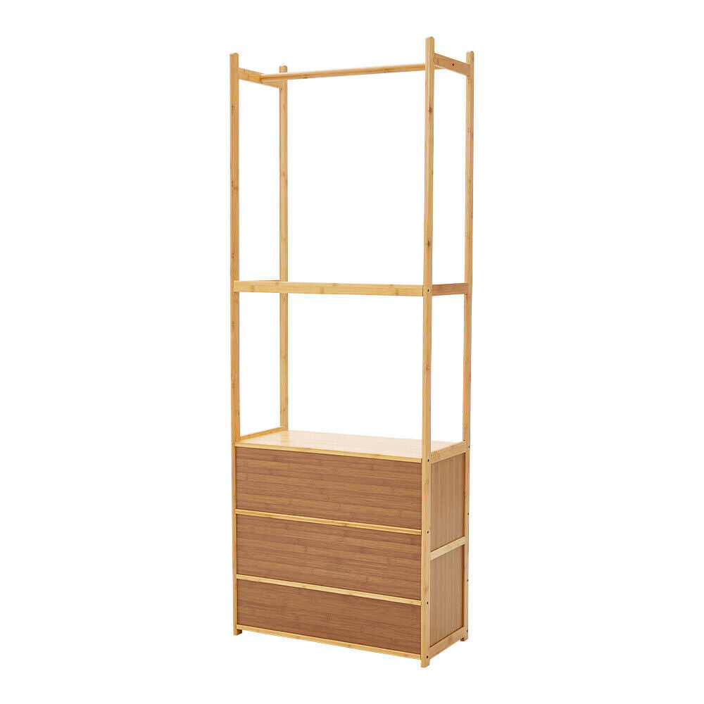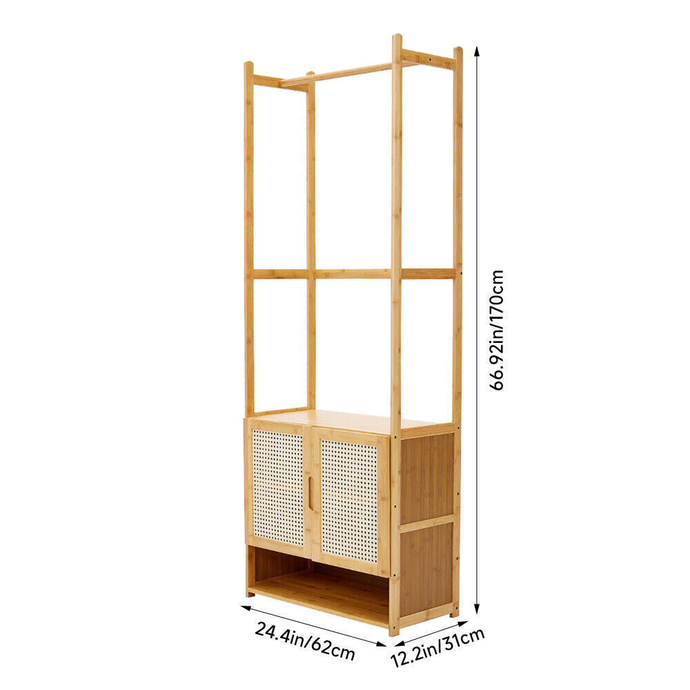 Bamboo Clothes Rail Garment Hanging Rack Shelf Display Stand Shoe Rack Cabinet