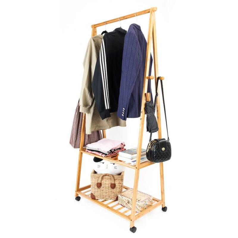 Bamboo Clothes Rail Rack Hanging Stand Shoe Rack Storage Shelf Clothes Hanger