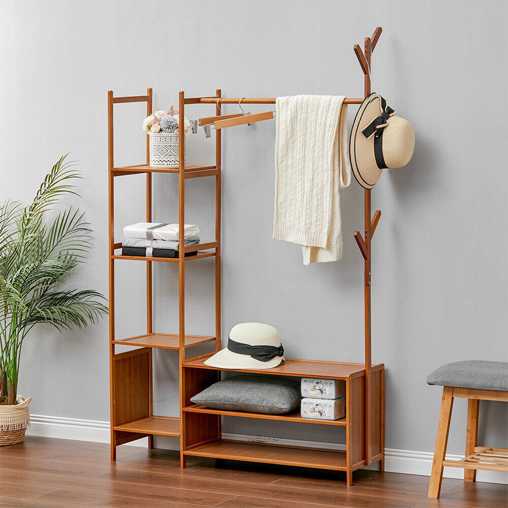 Bamboo Clothes Rail Scarf Cap Hanging Garment Coat Rack Heavy Duty Shelf Stand