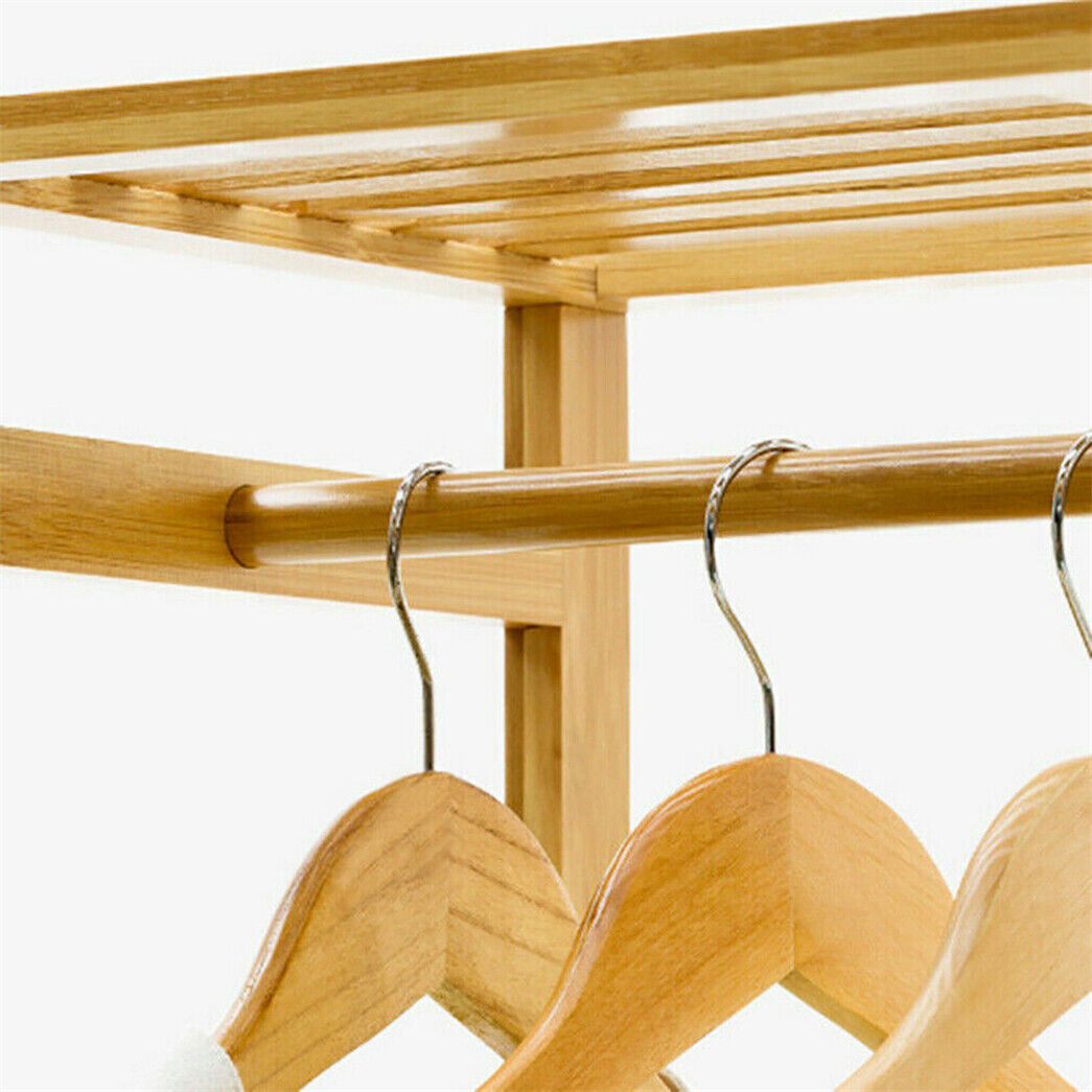 Bamboo Clothes Rail Scarf Holder Rack Garment Hanging Stand Mobile Storage Shelf
