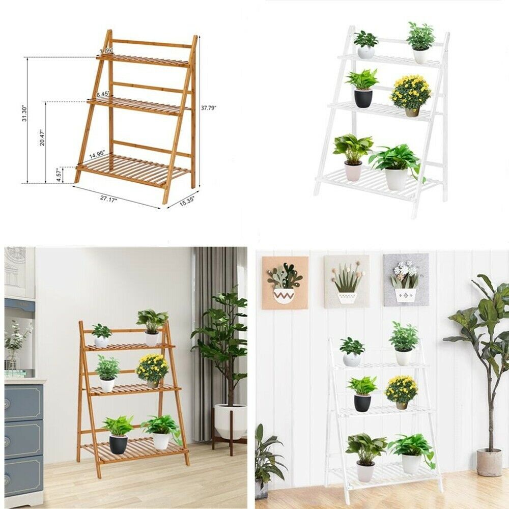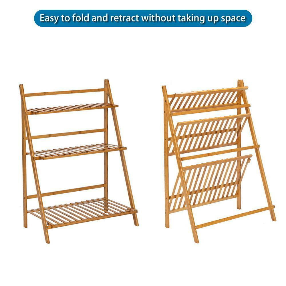 Bamboo Foldable Plant Stand Unit Storage Rack Display Shelving Display Holder