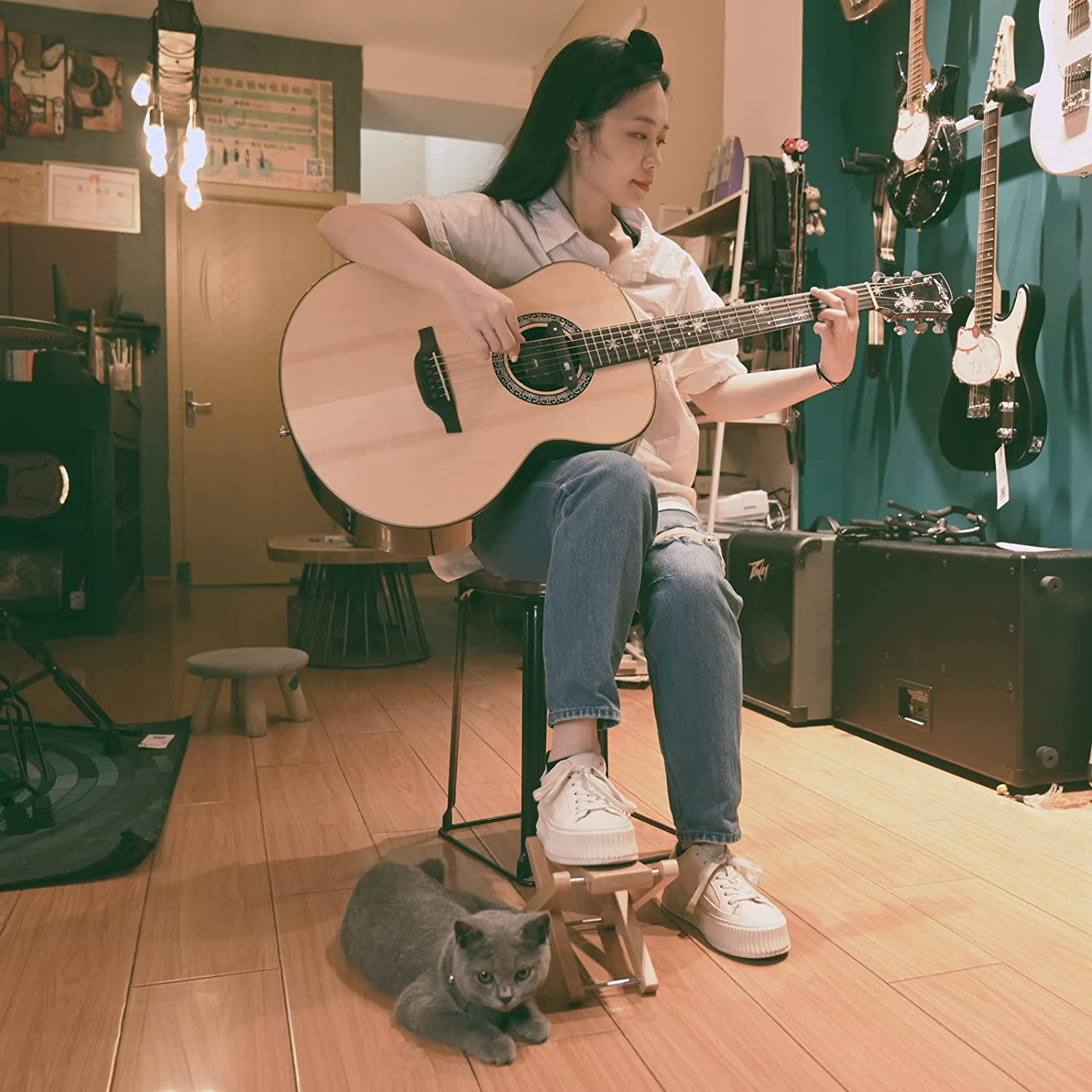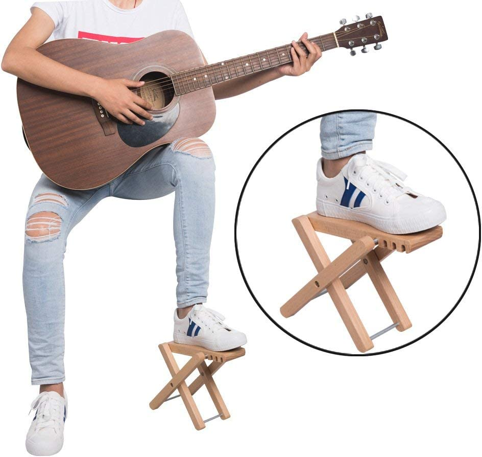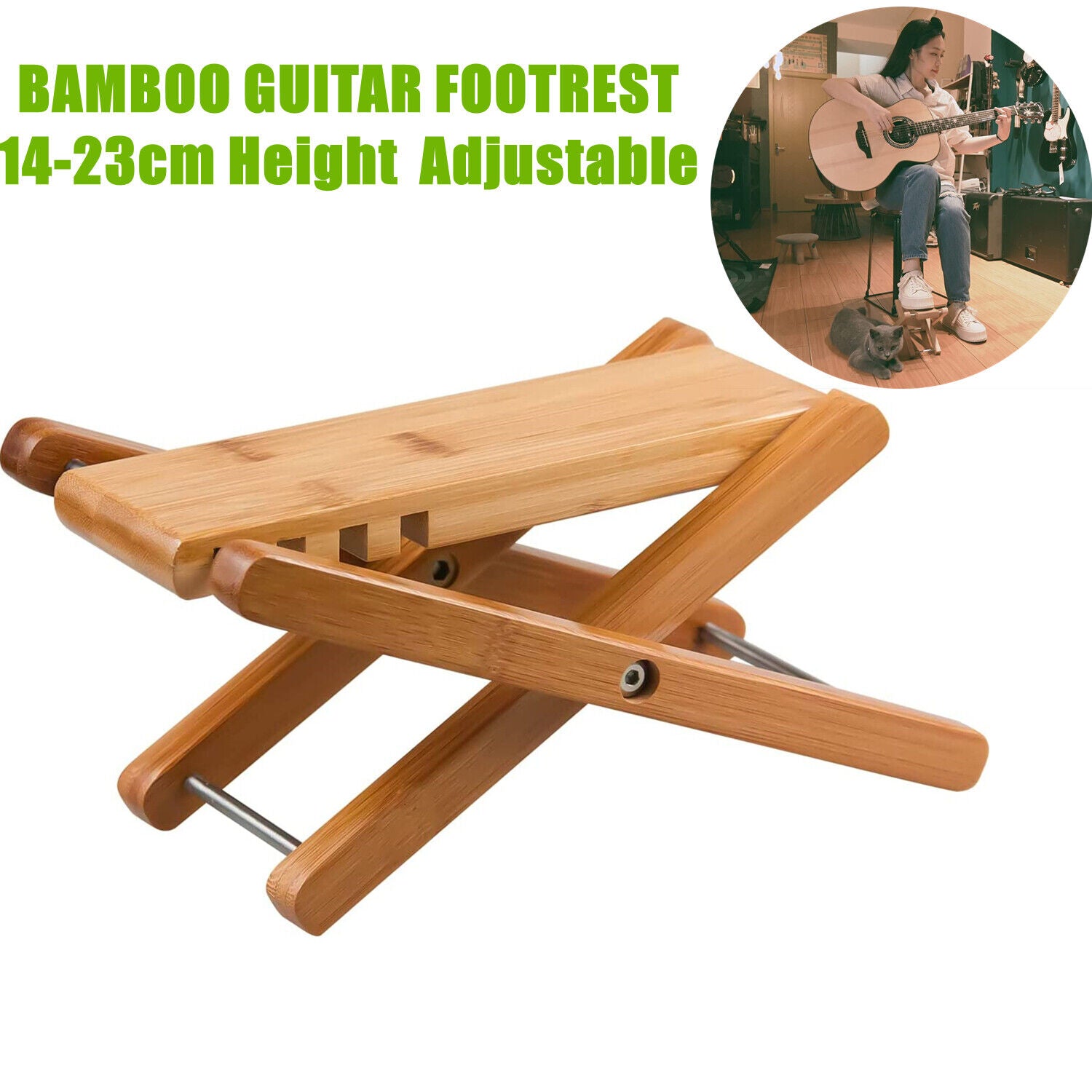 Bamboo Guitar Foot Stool Folding Musical Instrument Footrest 4 Adjustable Height