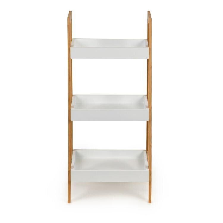 Bamboo Ladder 3 Tier Shelf Unit Bookcase Living Room Storage Shelving Display