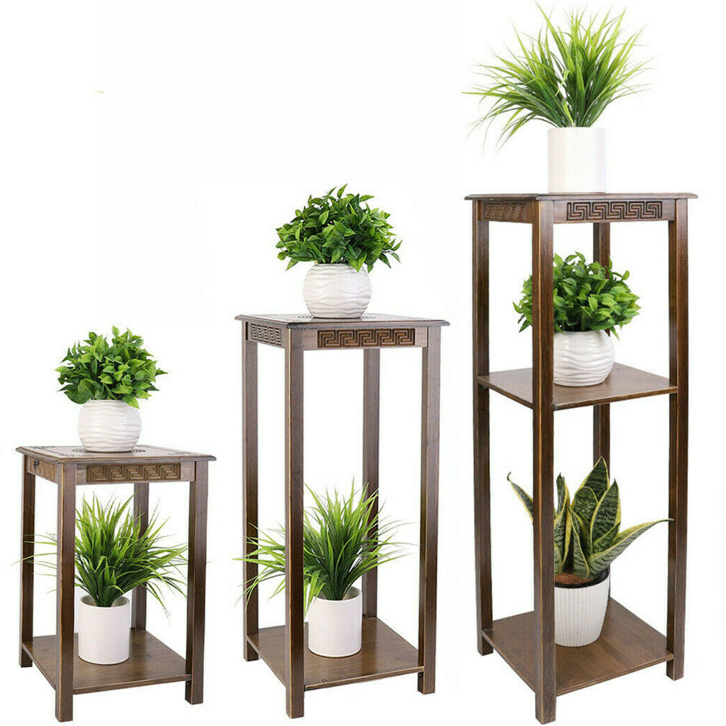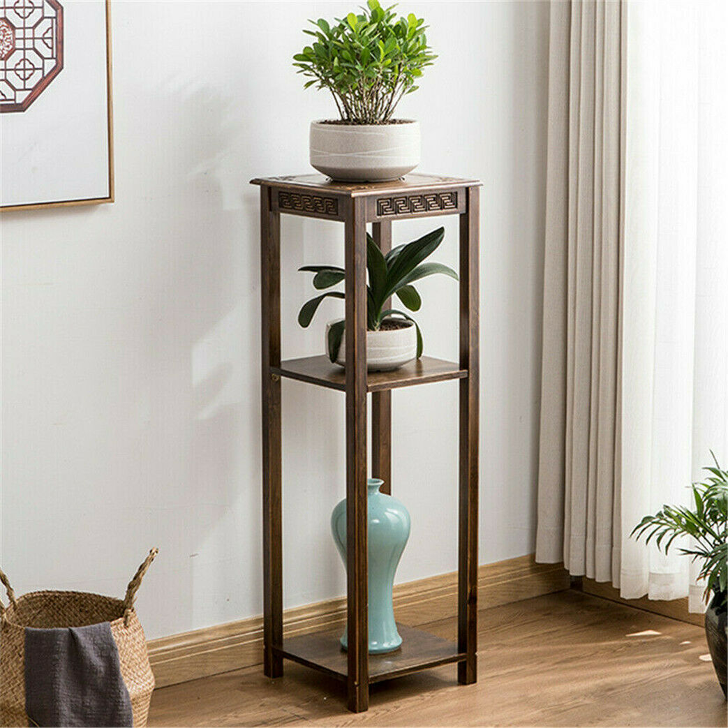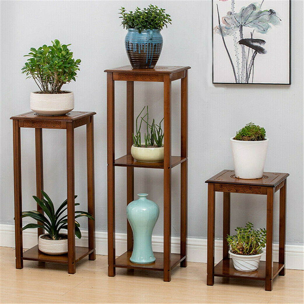 Bamboo Plant Flower Stand Sofa Side End Table Living Room Bonsais Display Decor