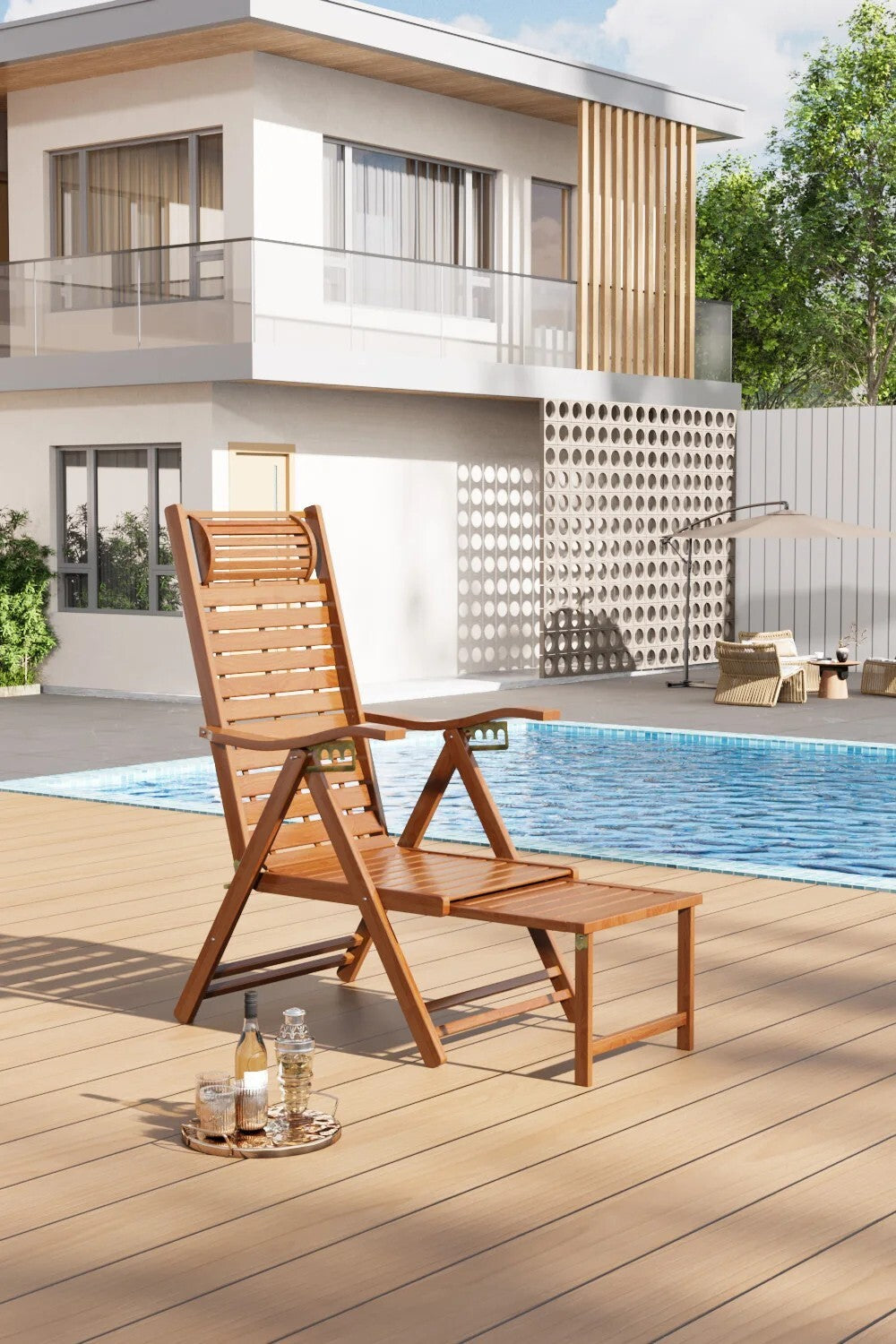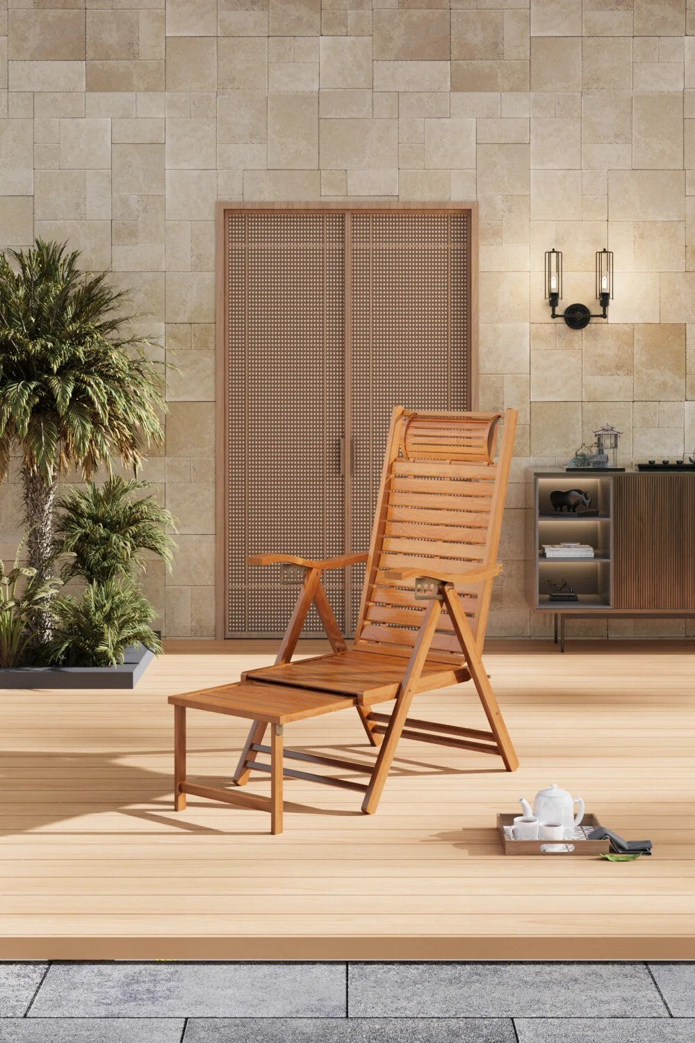 Bamboo Recliner Chair Outdoor Sun Lounger Garden Patio Adjustable Foot Rest UK