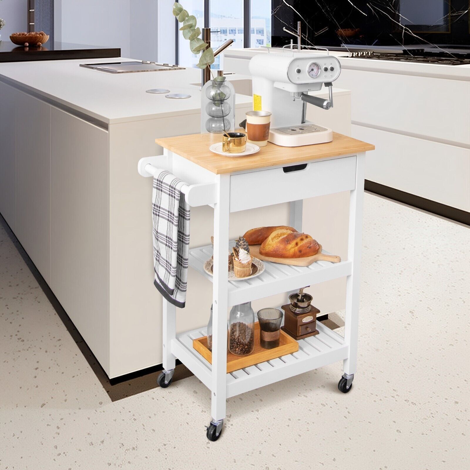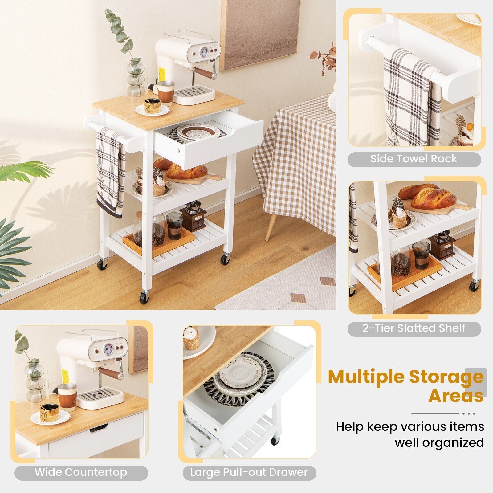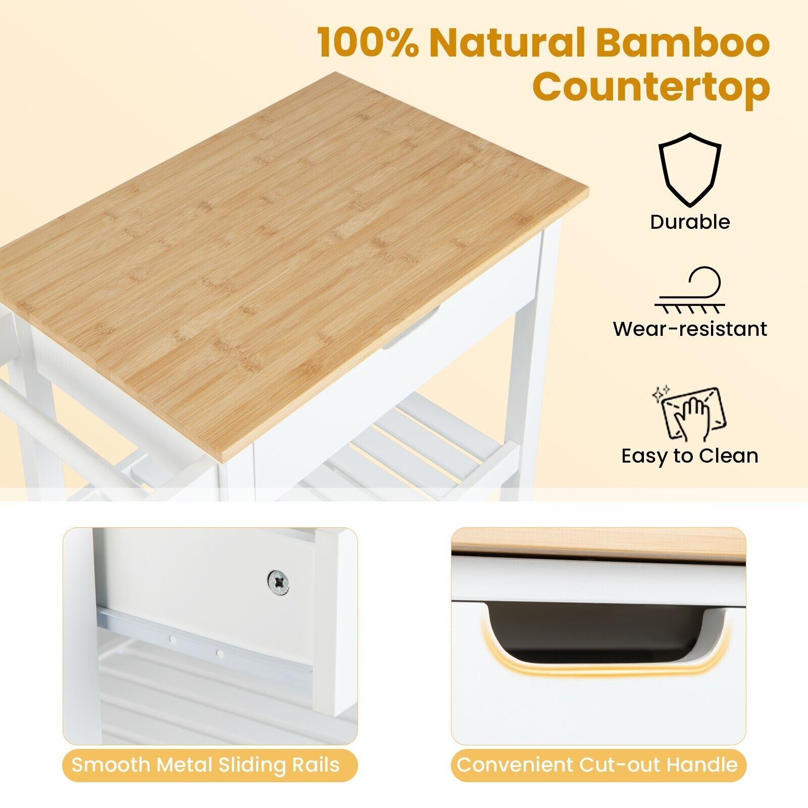 Bamboo Rolling Kitchen Island Mobile Bar Serving Cart W/ Drawer & Towel Rack