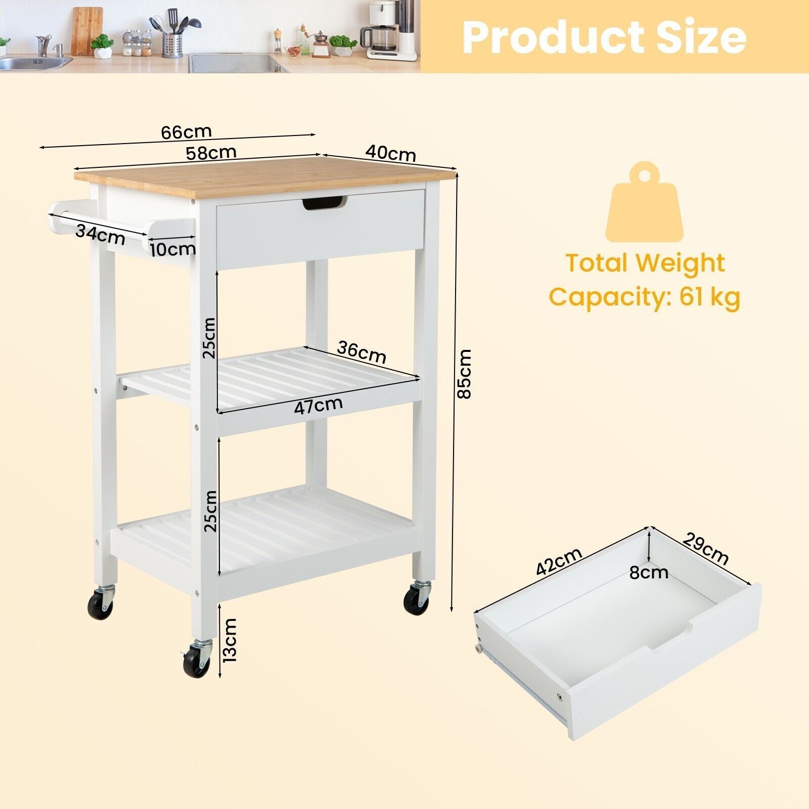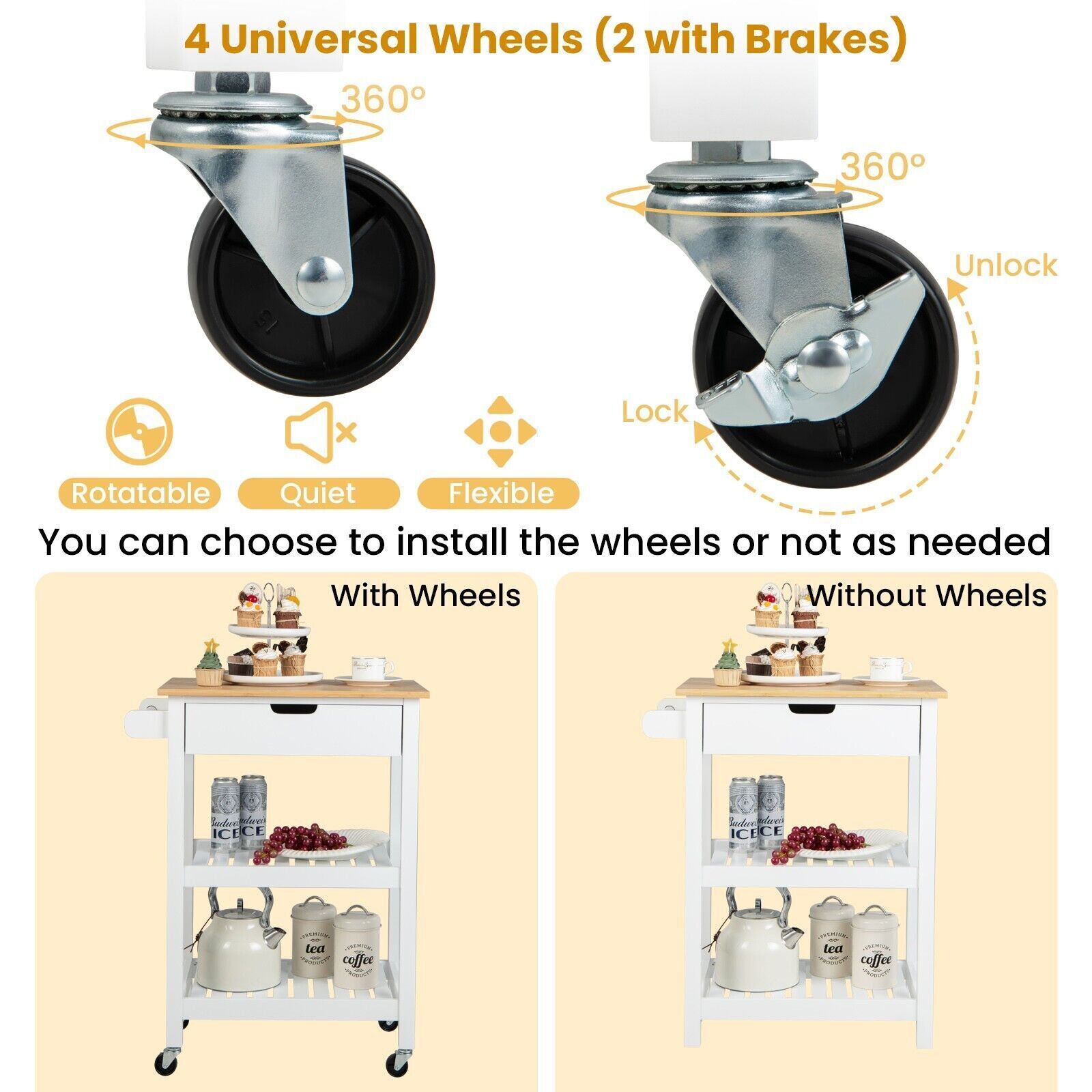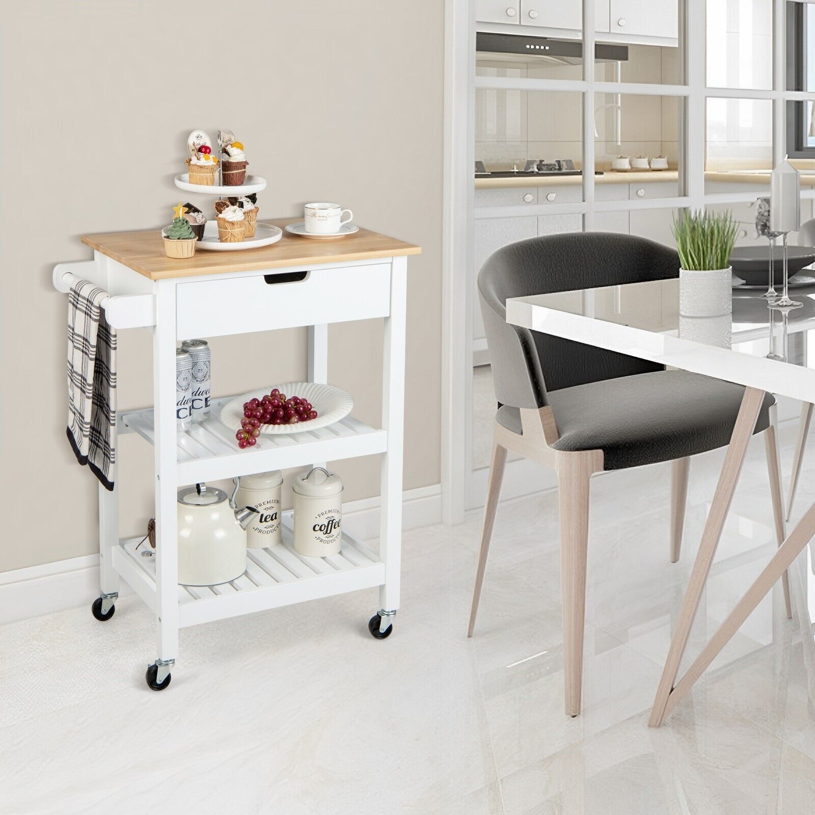 Bamboo Rolling Kitchen Island Mobile Bar Serving Cart W/ Drawer & Towel Rack