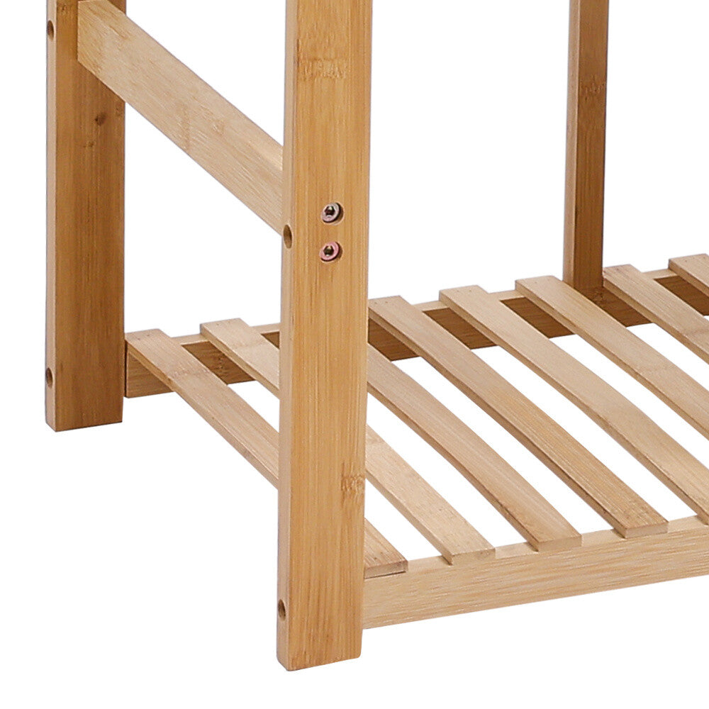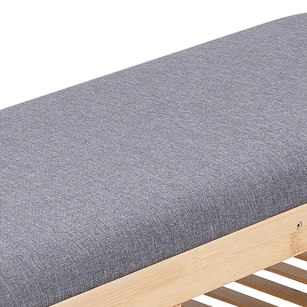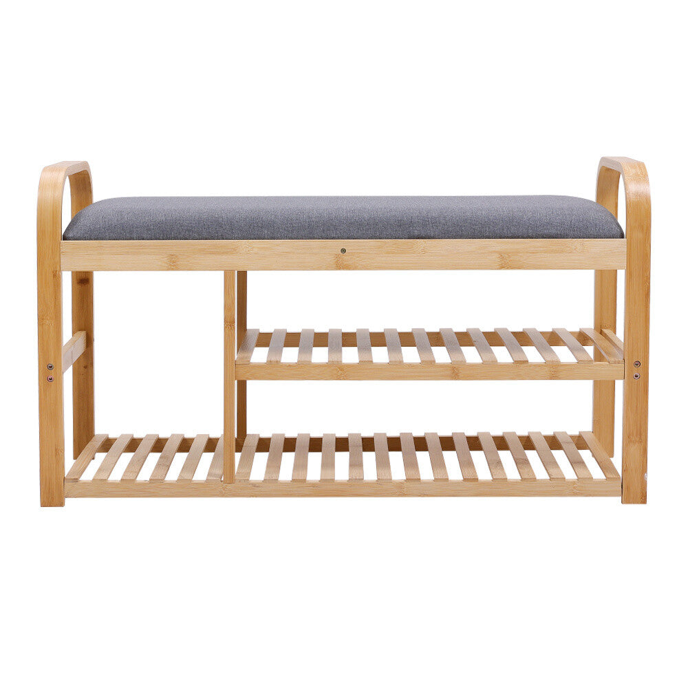 Bamboo Shoe Rack Bench w/ Seat Stool 2 Tiers Upholstered Bench Shelf Entryway