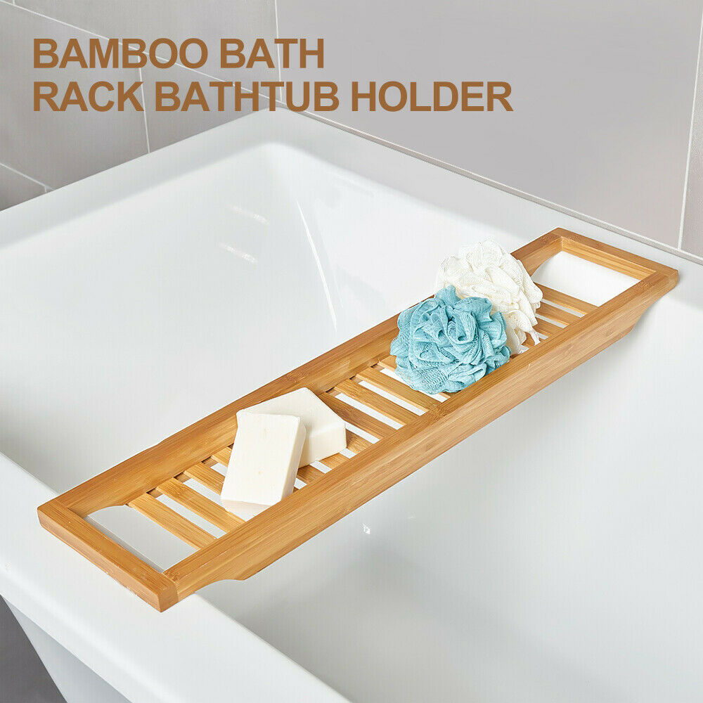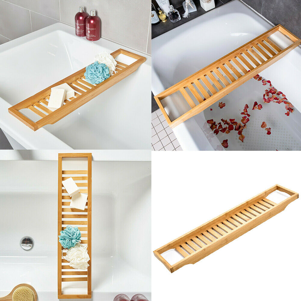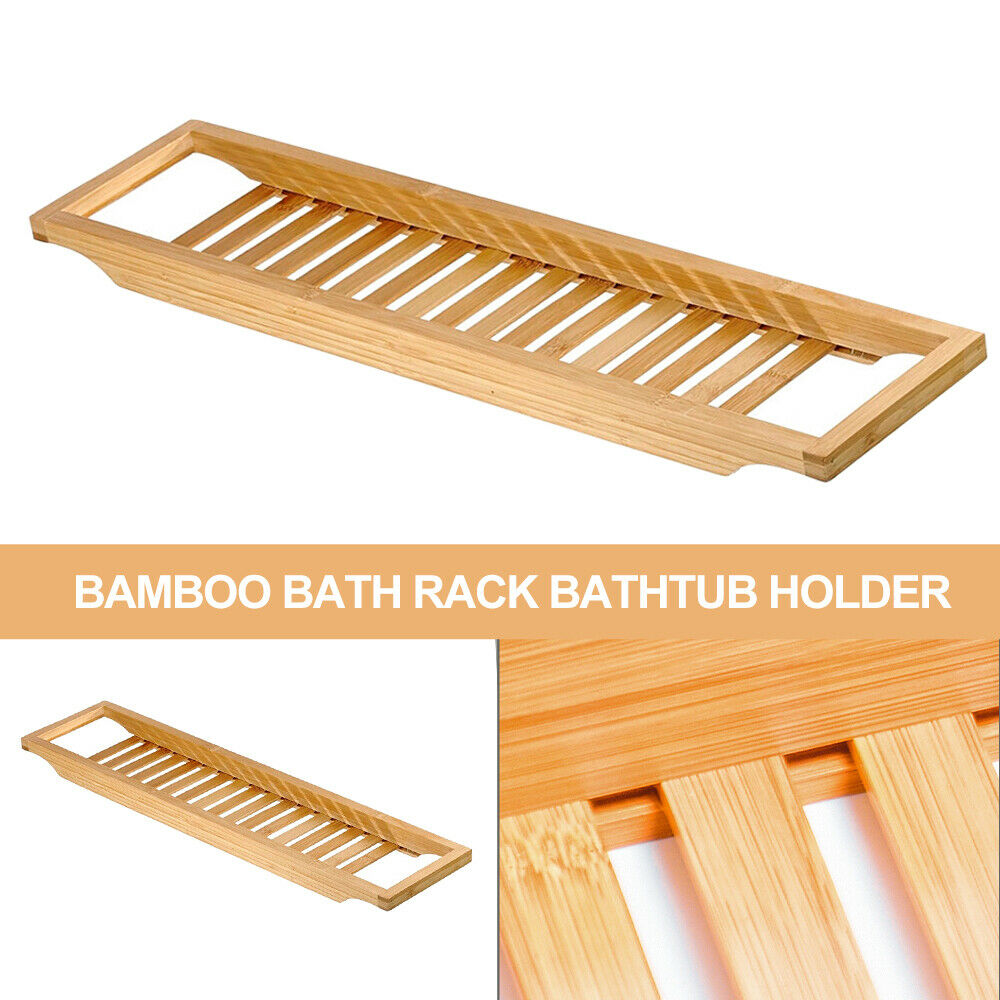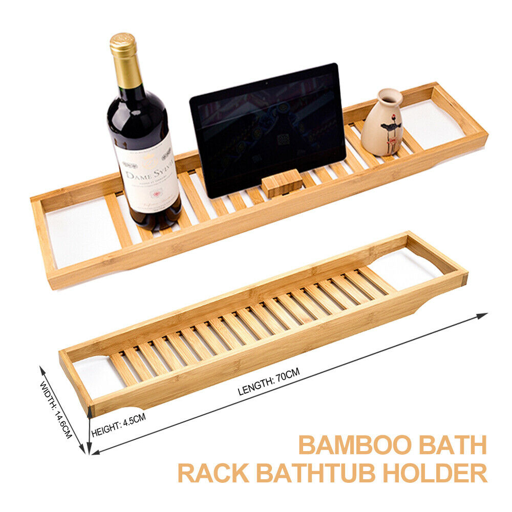 Bamboo Wood Bath Tub Rack Bathroom Shelf Tidy Tray Storage Caddy Organiser Wood
