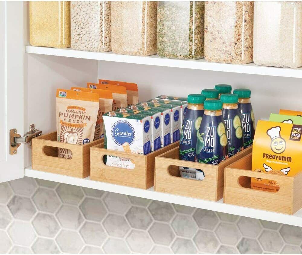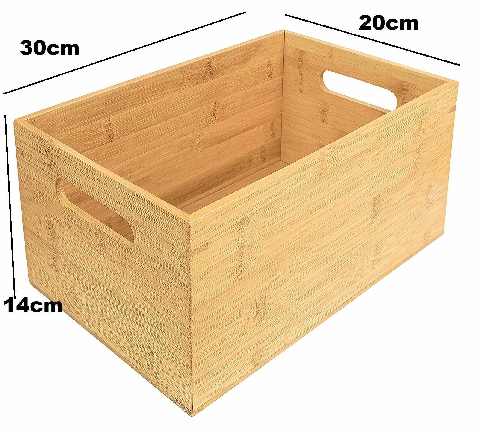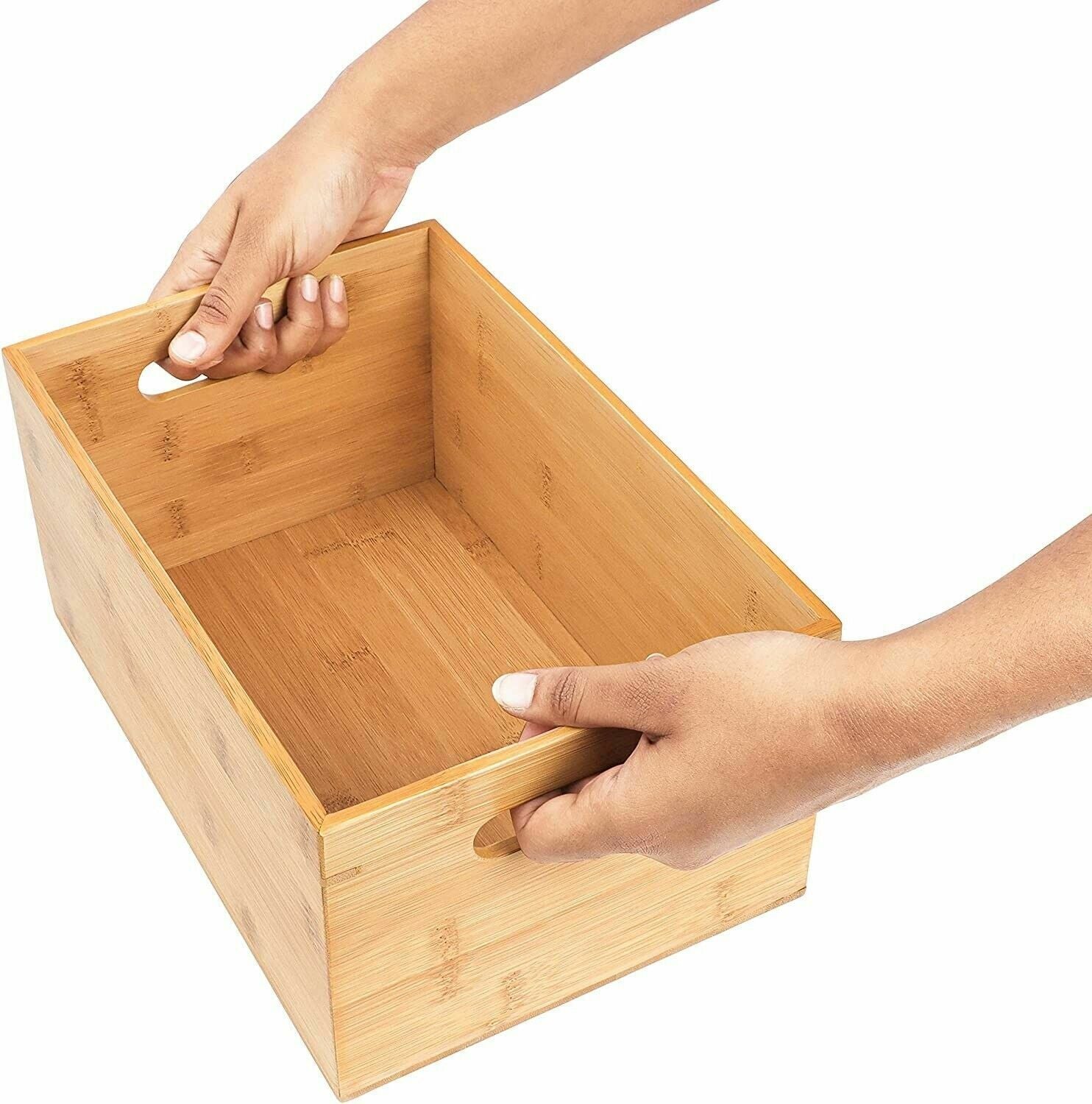 BAMBOO WOOD FOOD STORAGE BOX TRAY ORGANIZER TIDY BIN GRIP HANDLE CUPBOARD SHELF