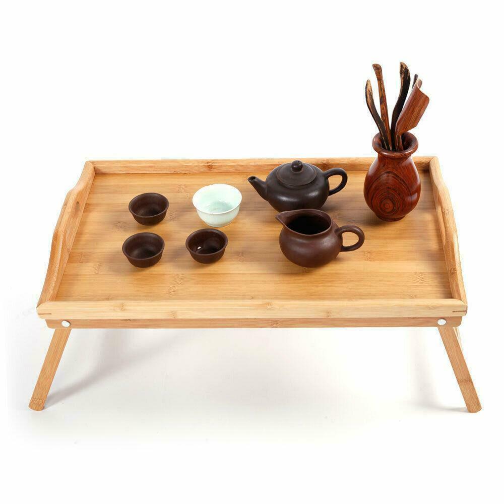 Bamboo Wooden Bed Tray With Folding Legs Serving Breakfast Lap Tray Table Mate
