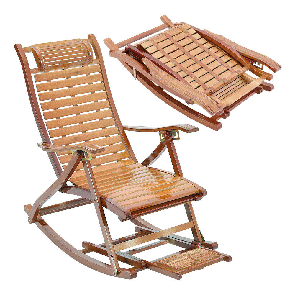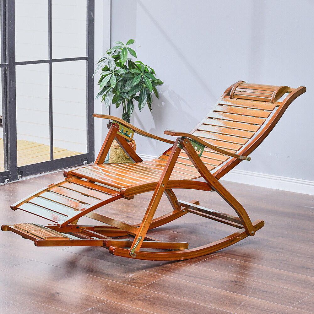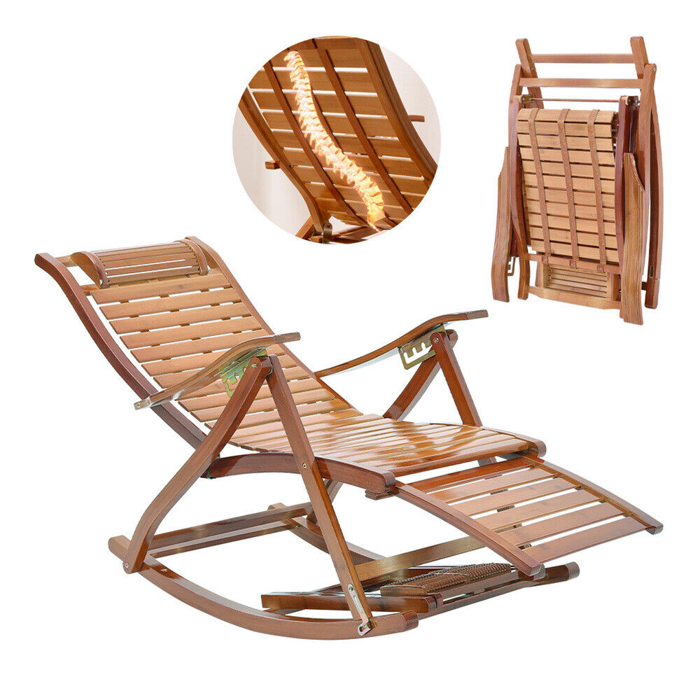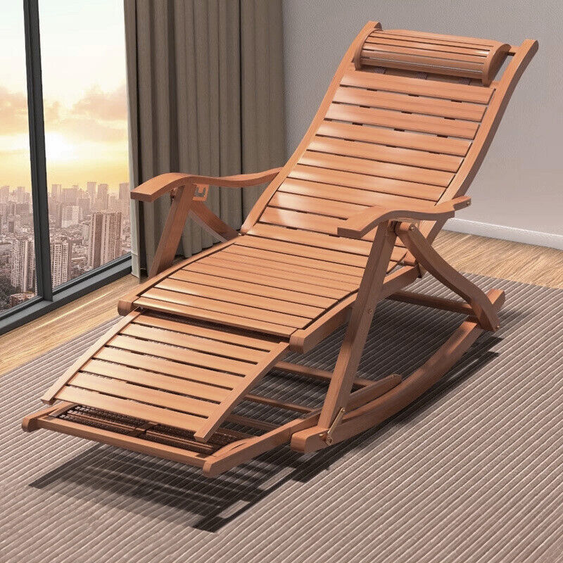 BambooWood Deck Rocking Chair Patio Garden Outdoor Sun Lounger Reclining Day Bed