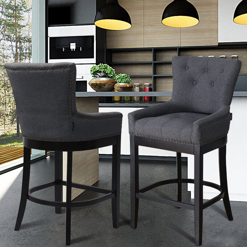Bar Stools Breakfast Kitchen Counter High Stools Button Back Wood Legs Barstools