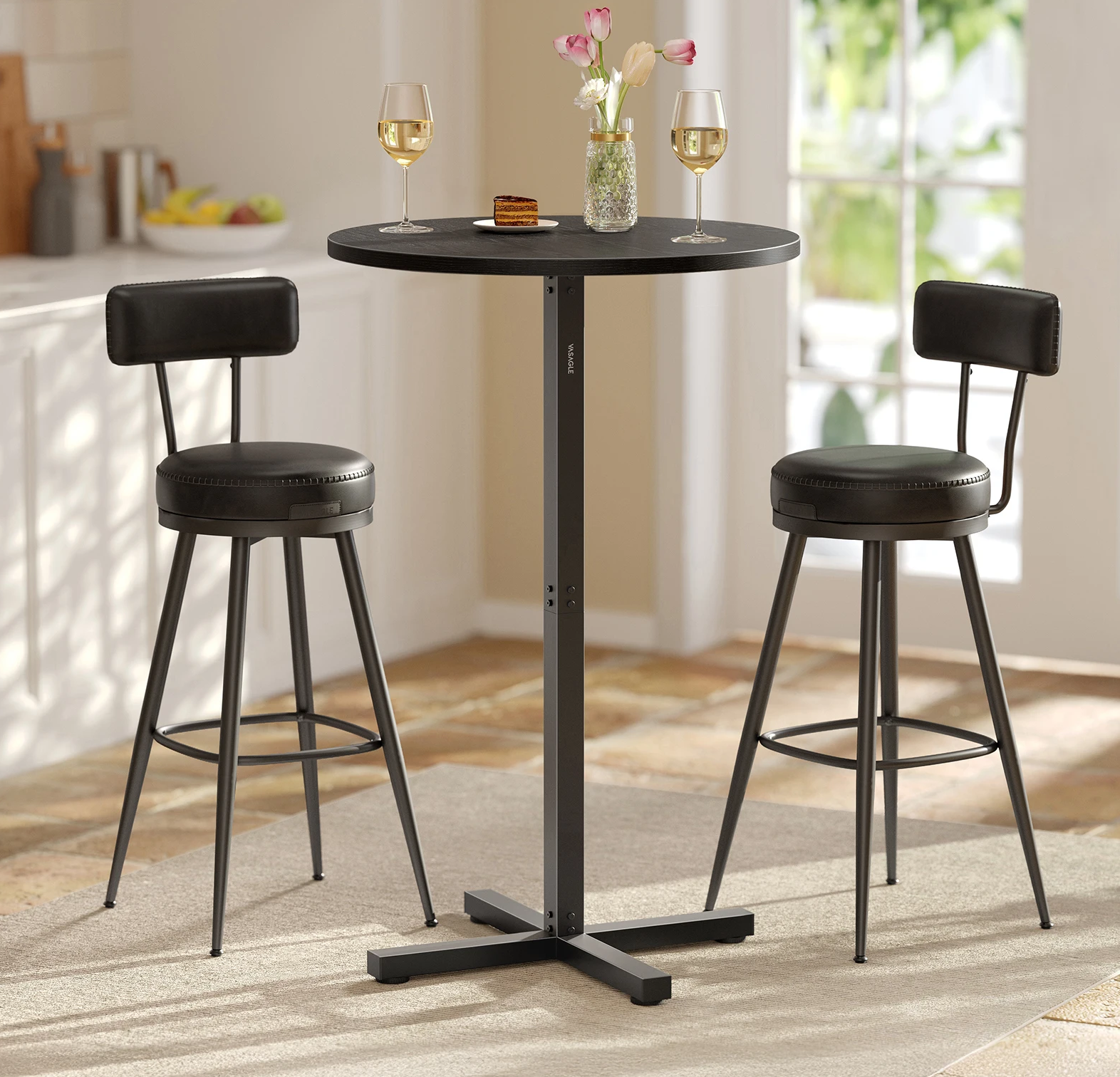 Bar Table 60x60cm High Dining Table Metal Frame with Cross Base Modern Black
