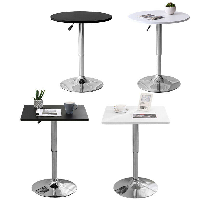 Bar Table Side Breakfast Table Adjustable Chrome 360 Swivel Bistro Black/White