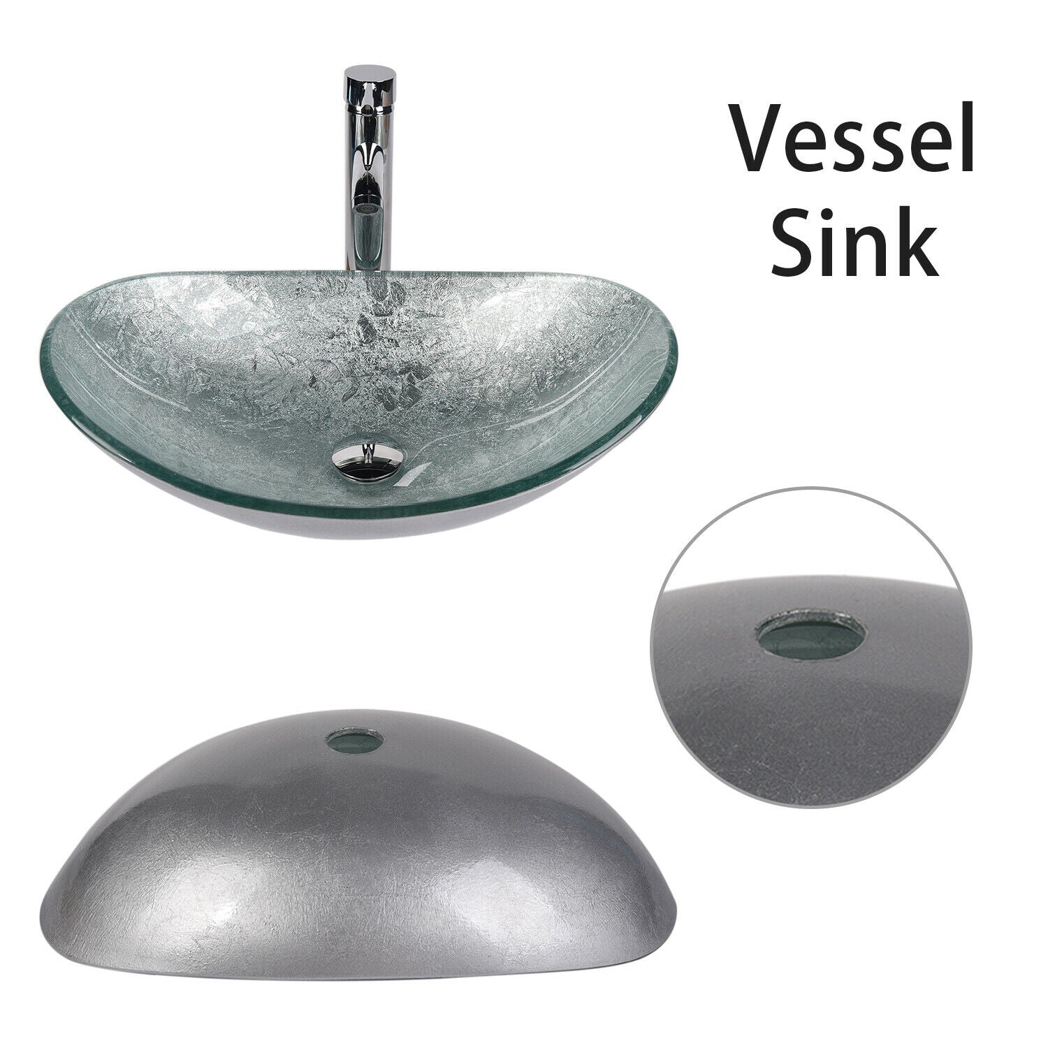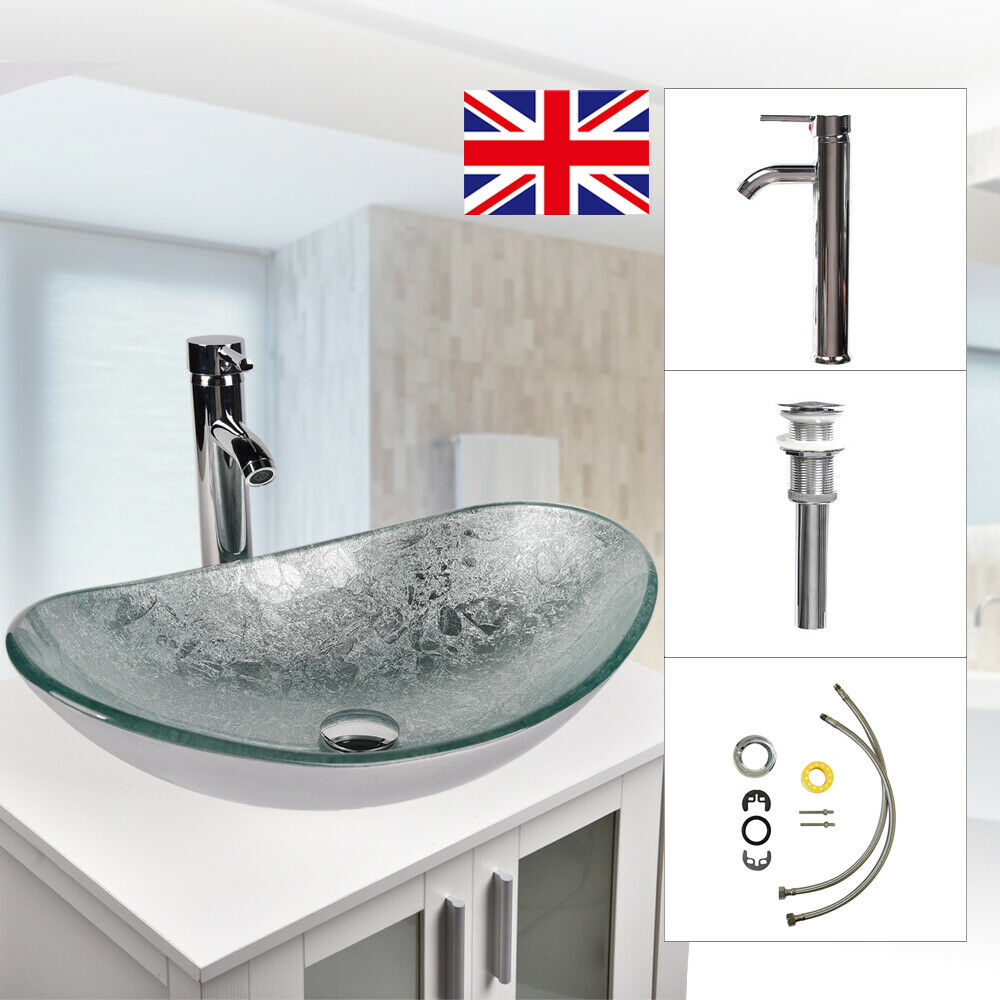 Bathroom Basin Sink Countertop Glass Sink Cloakroom Hand Wash Bowl Tap Waste Set