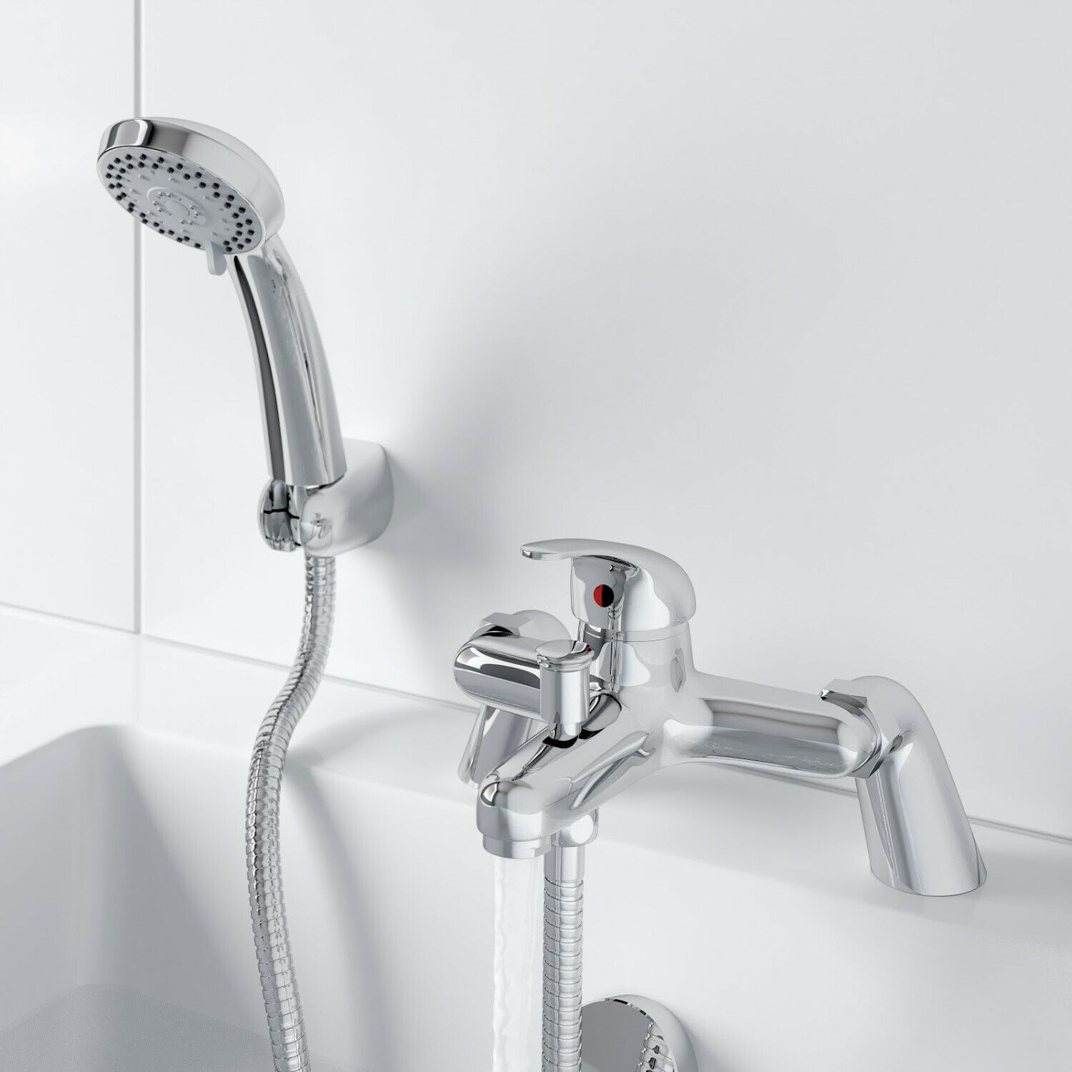 Bathroom Bath Shower Mixer Tap with Handset Chrome Modern Curved Single Lever