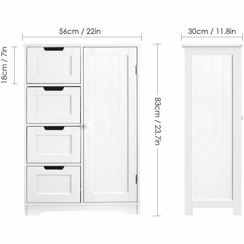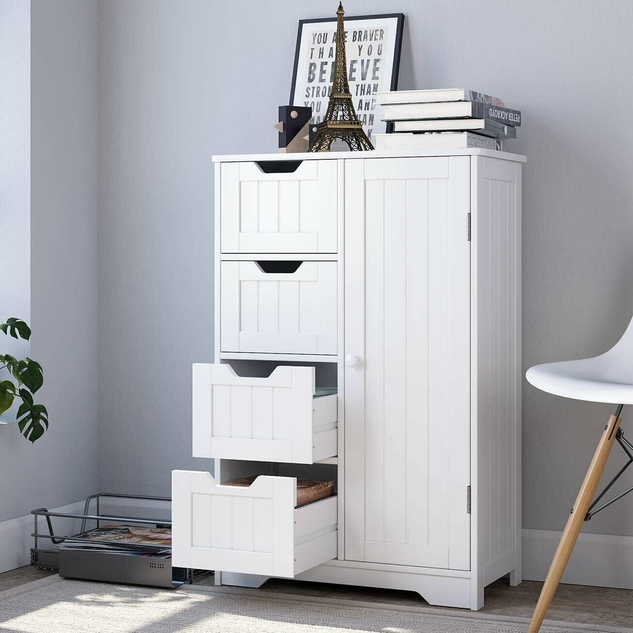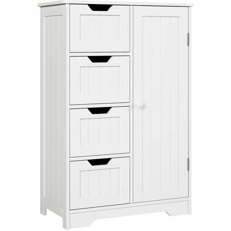 Bathroom Bedroom Nursery Storage Cabinet Dresser 4-Drawer + Door (White)
