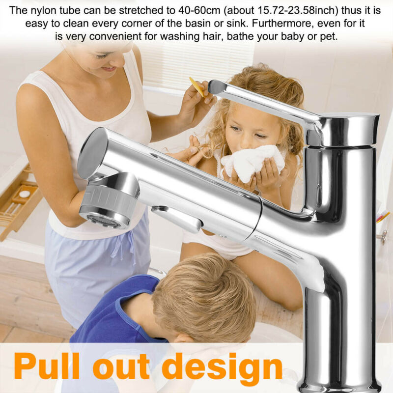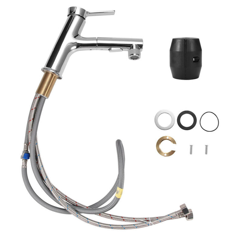 Bathroom Brass Sink Faucet Rinser Cold Hot Mixer Tap Basin Tap Pull Out Sprayer