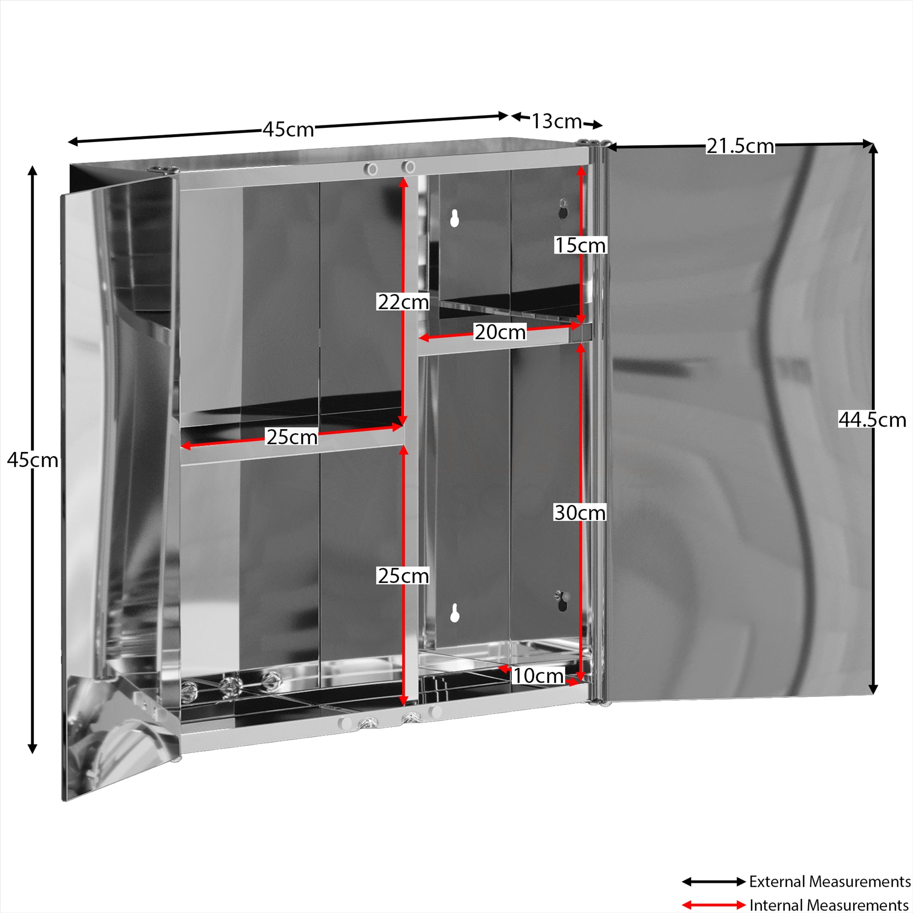 Bathroom Cabinet Double Triple Door Mounted Mirrored Stainless-Steel Storage
