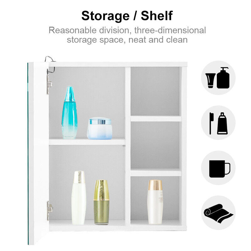 Bathroom Cabinet Mirror 1 Door LED Touch White Wall Mounted Storage Modern