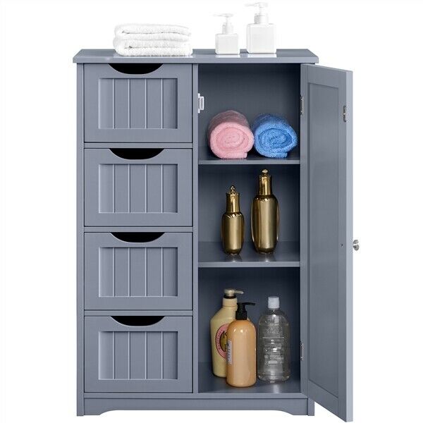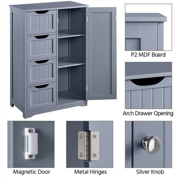 Bathroom Cabinet Storage 4 Drawer 1 Door Free Standing Cupboard Unit Grey