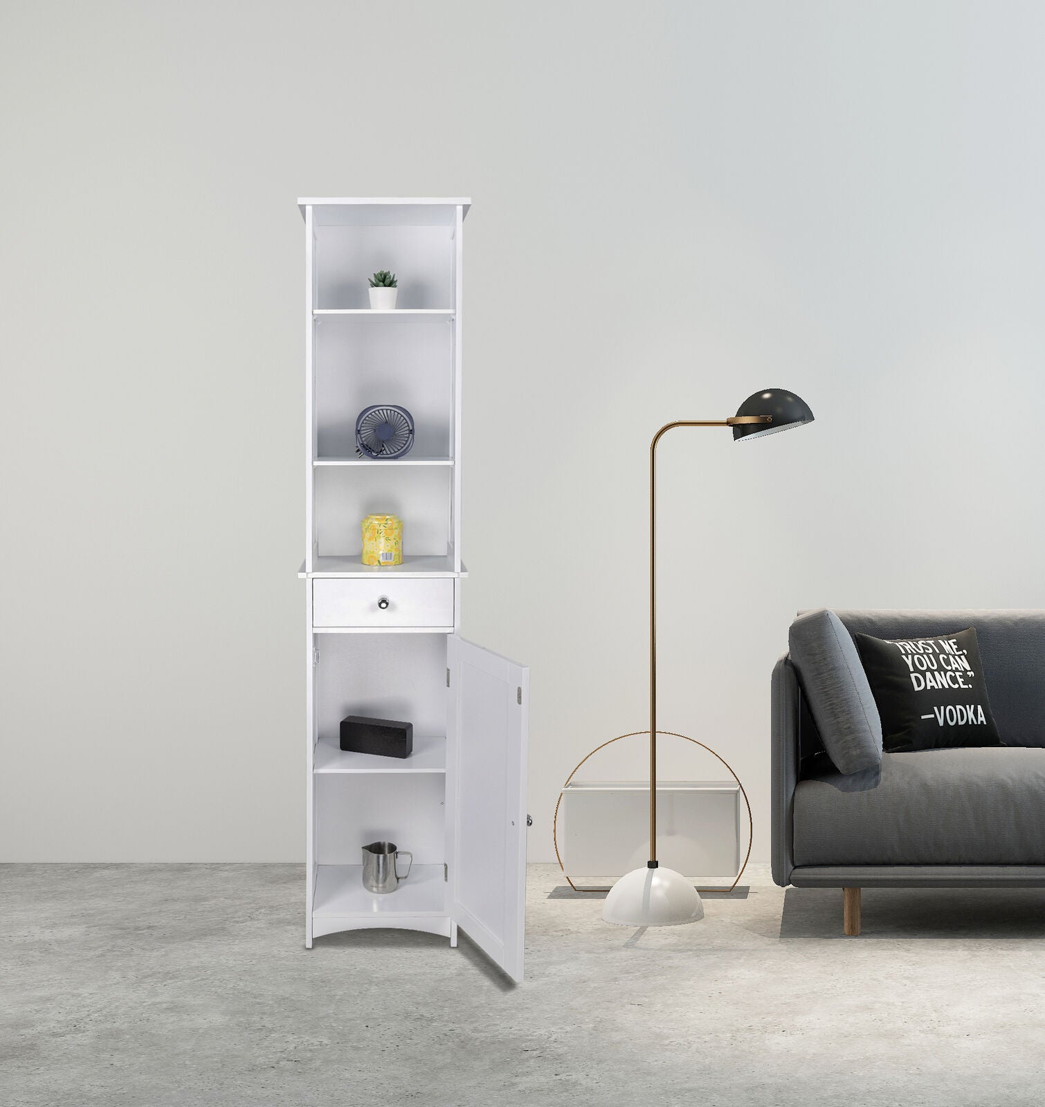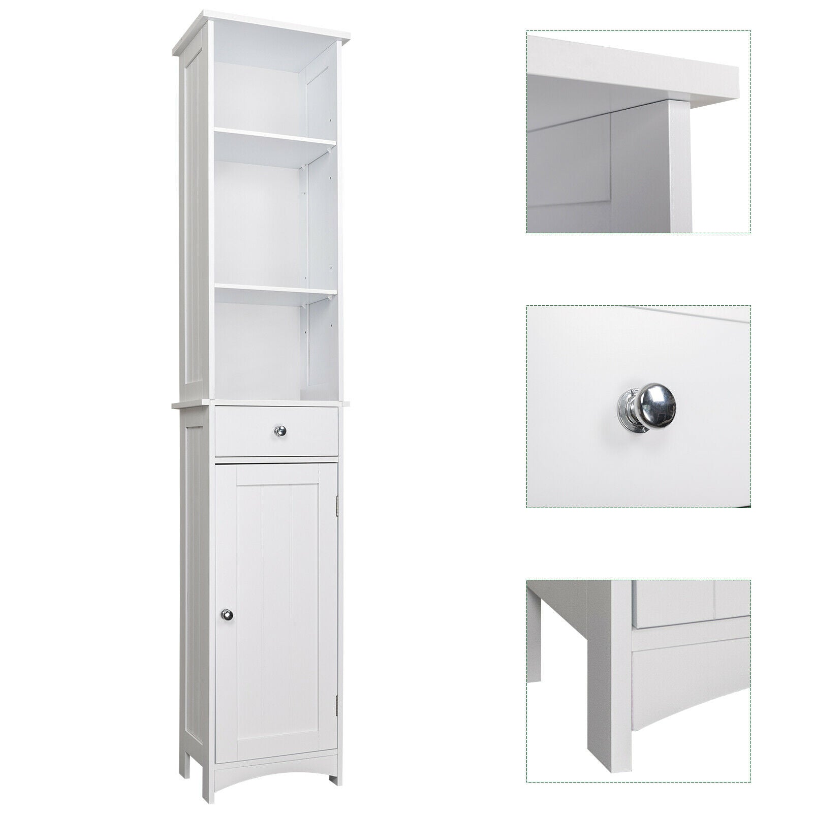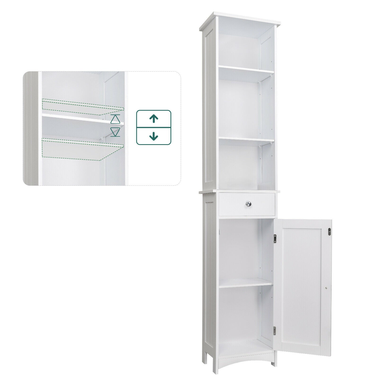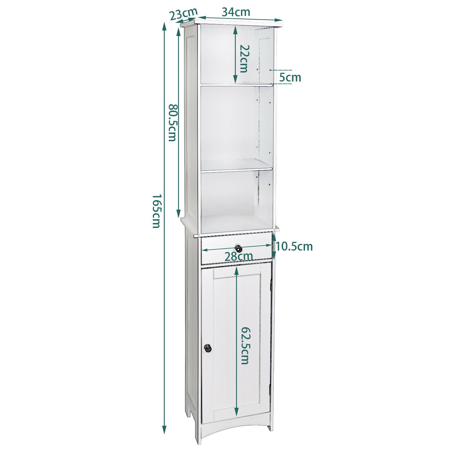 Bathroom Cabinet Storage with Shelves Drawer Free Standing Cupboard Unit White