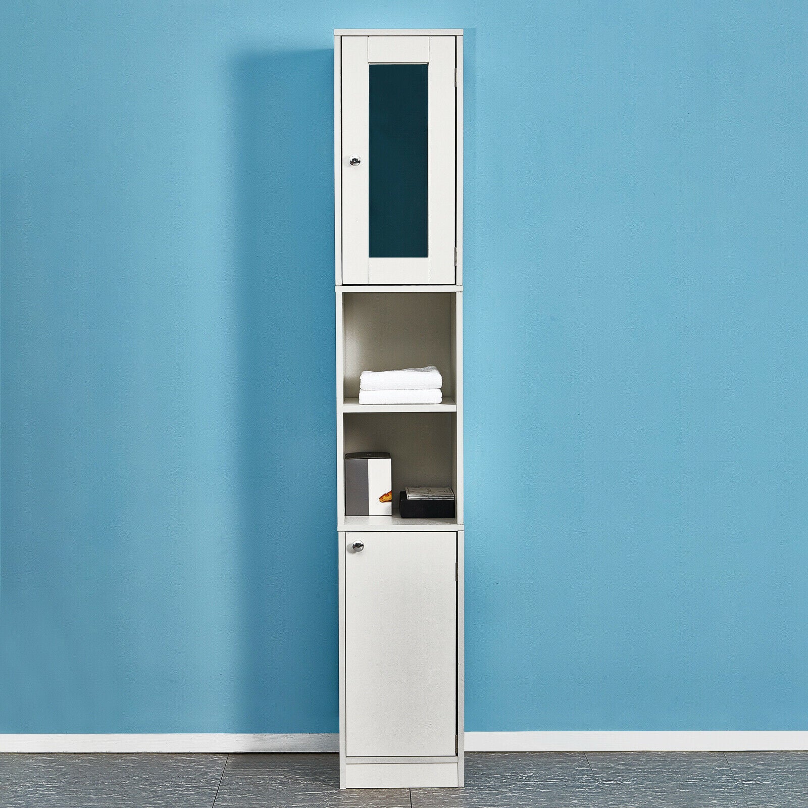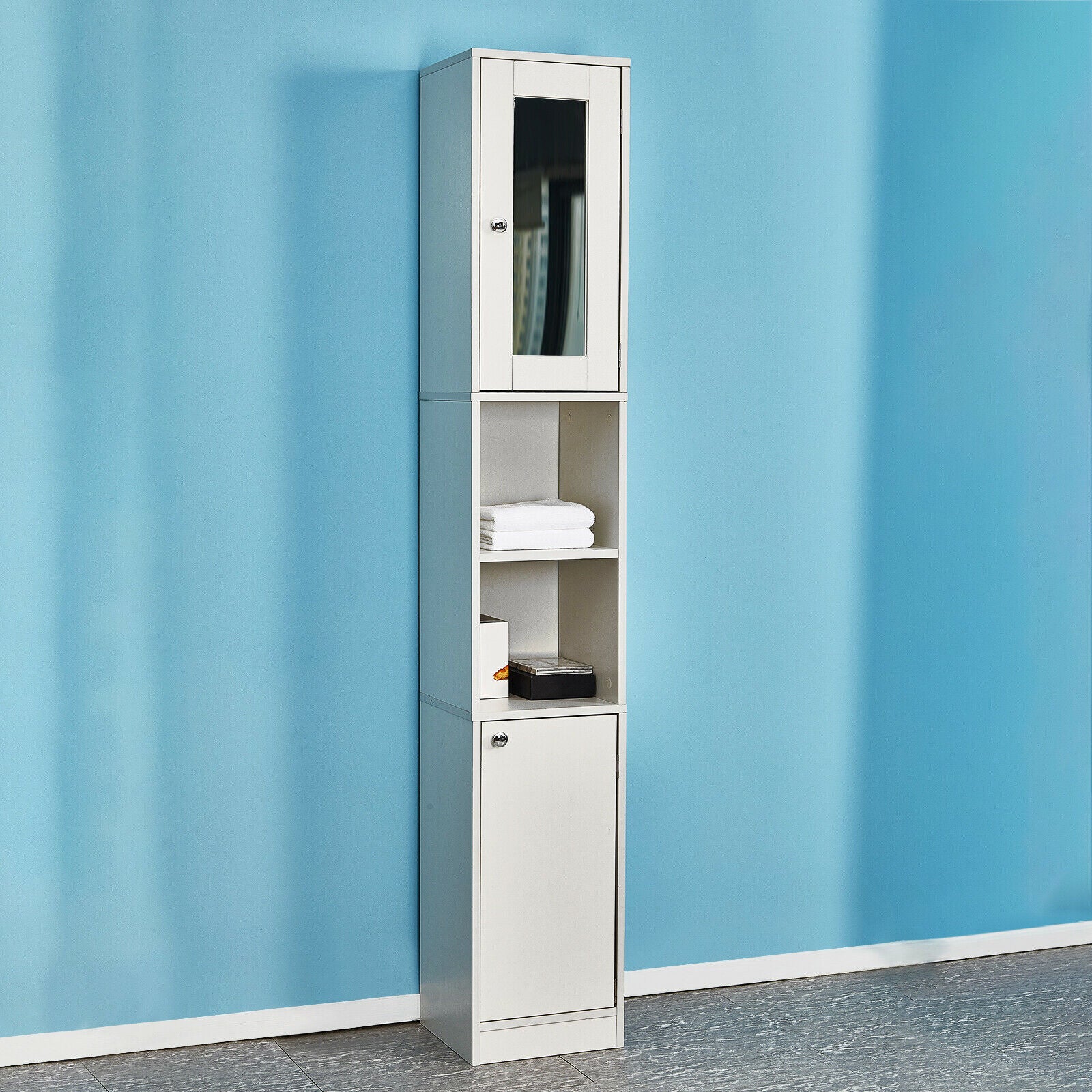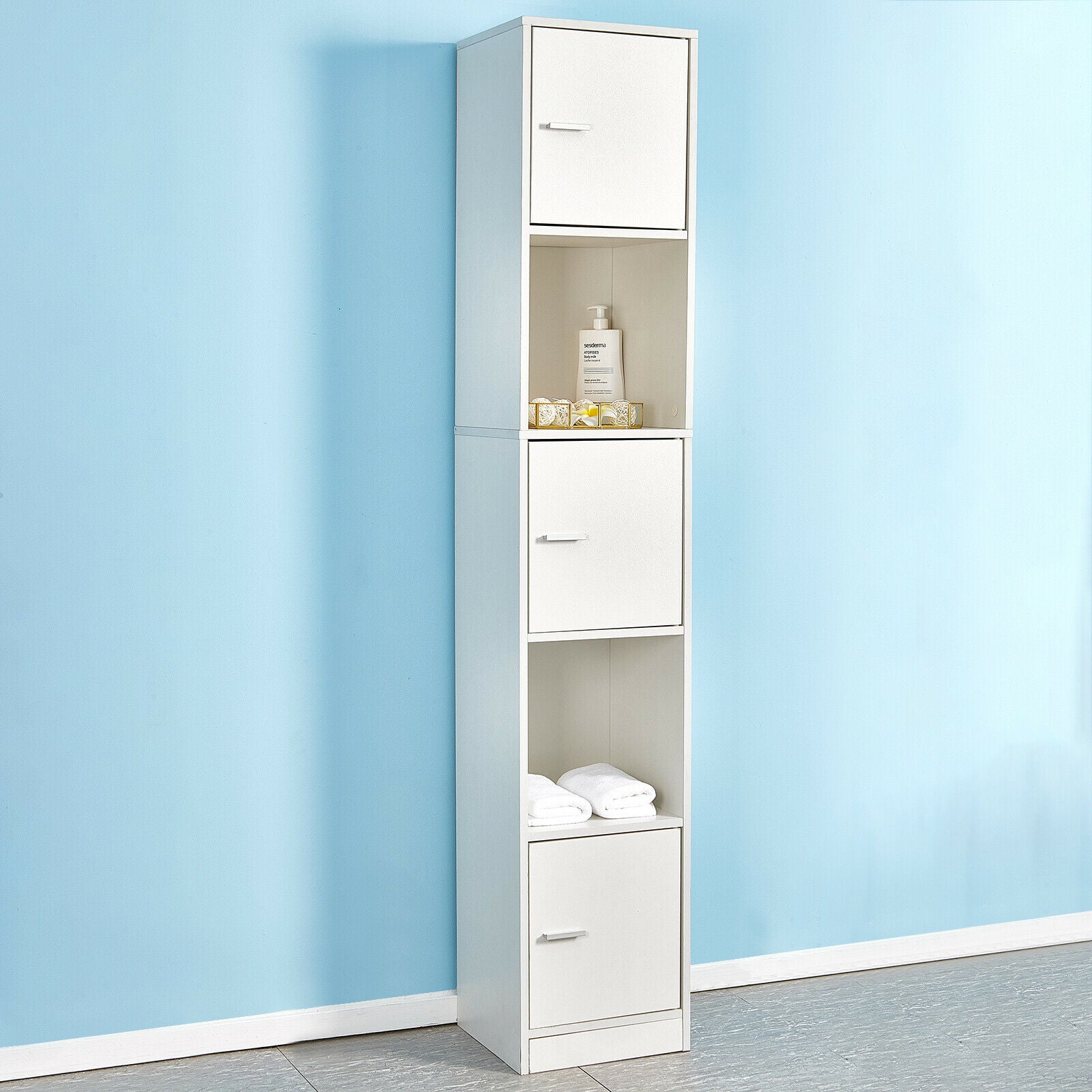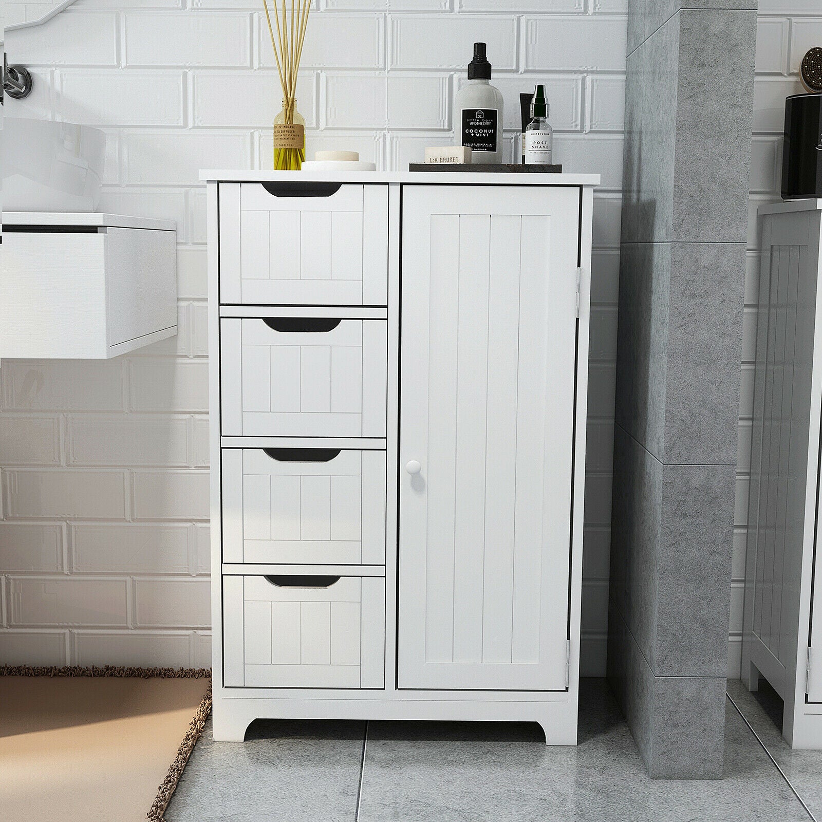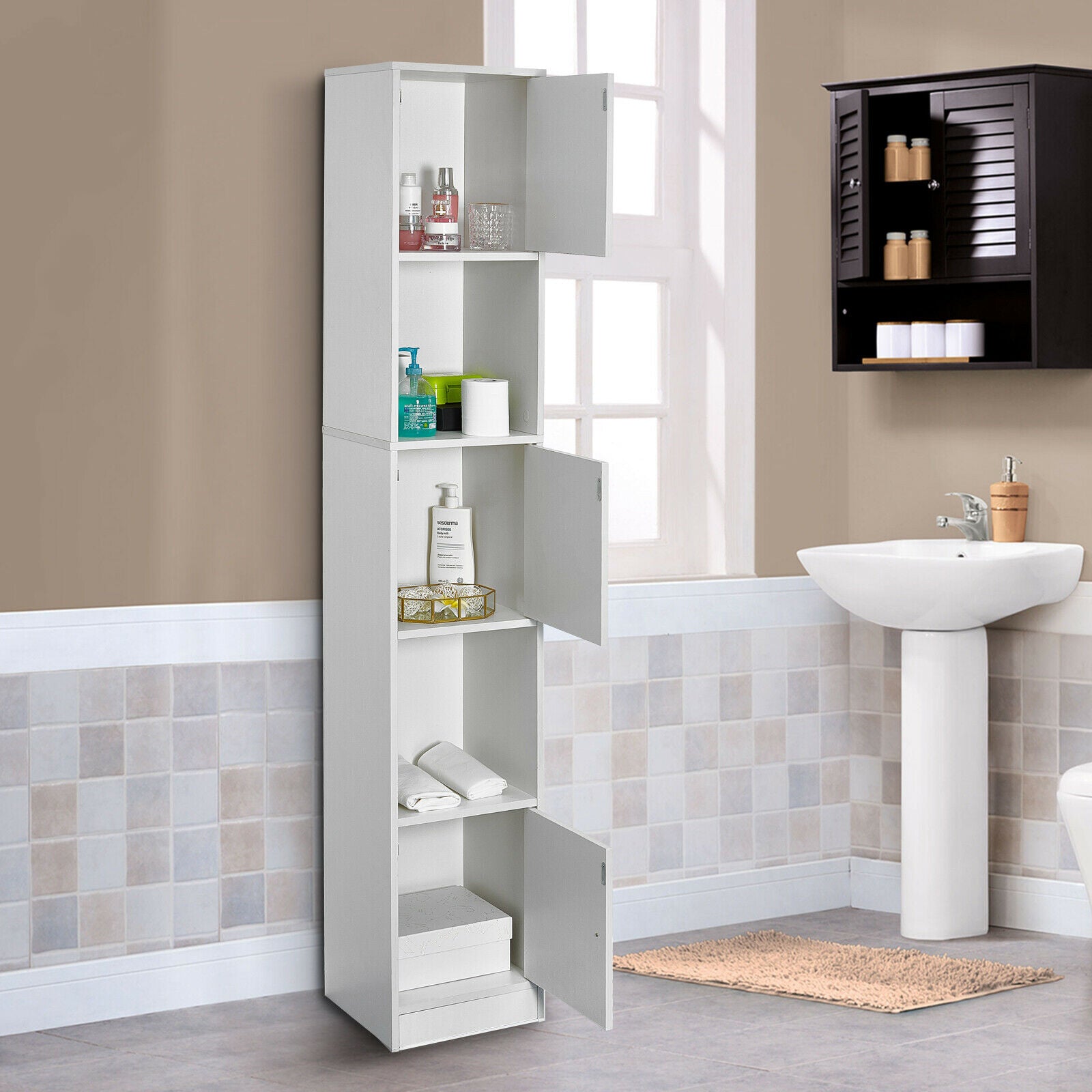 Bathroom Cabinet w/ Doors&Shelves Cupboard Storage Unit 3 Styles Furniture White