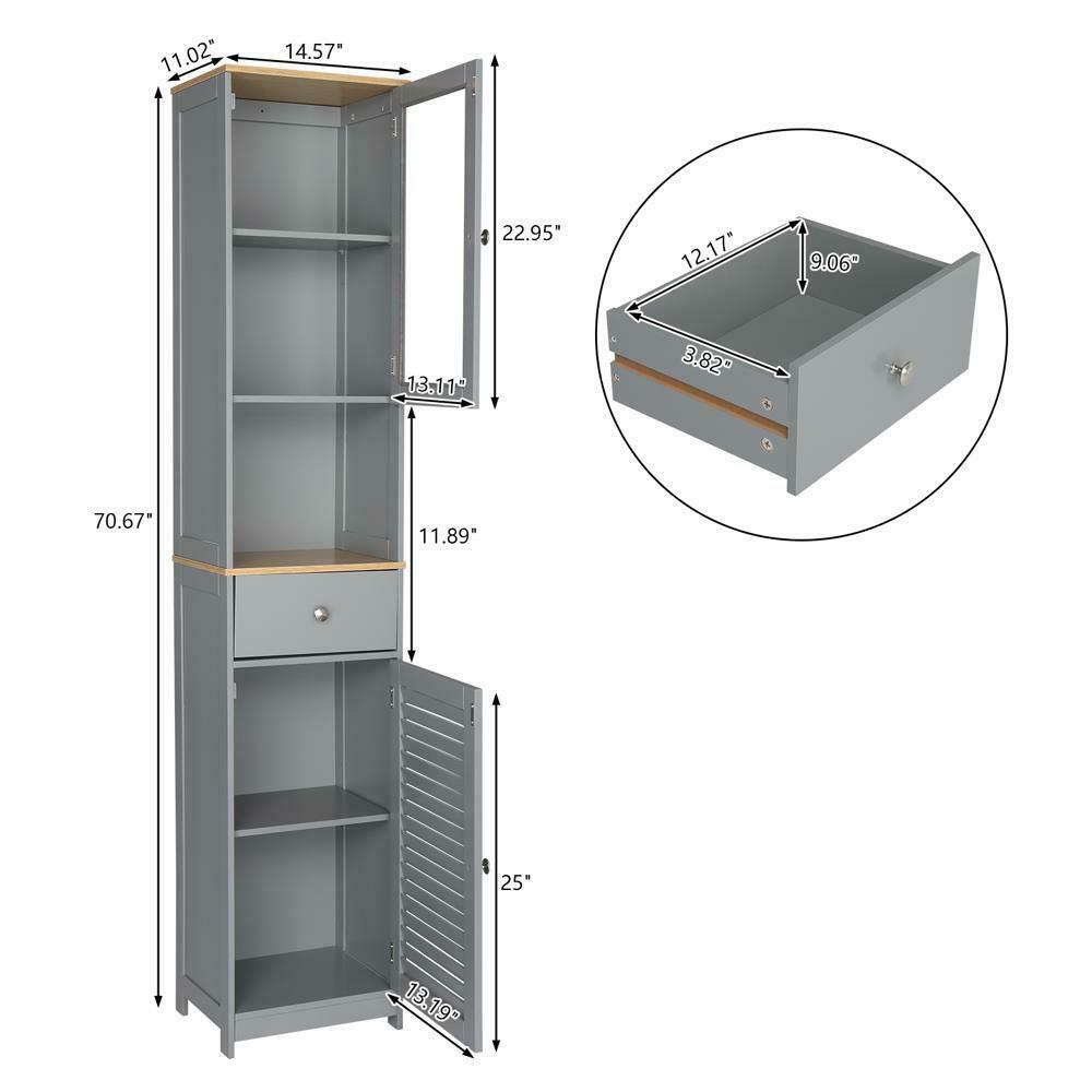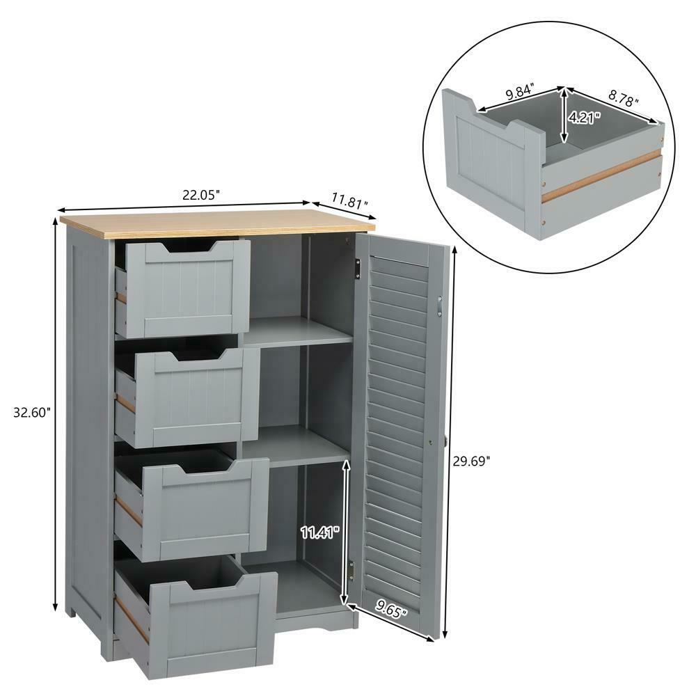 Bathroom Cabinet w/ Doors&Shelves Cupboard Storage Unit 5 Styles Furniture Grey
