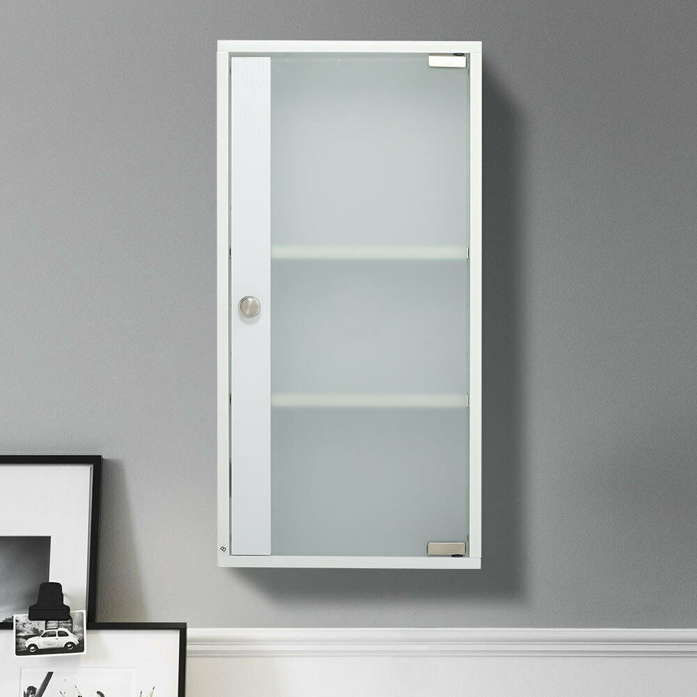 Bathroom Cabinet White Wooden Single Door Wall Mounted Unit Storage Shelf Rack