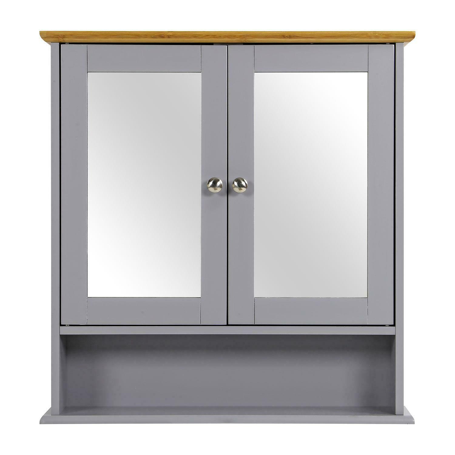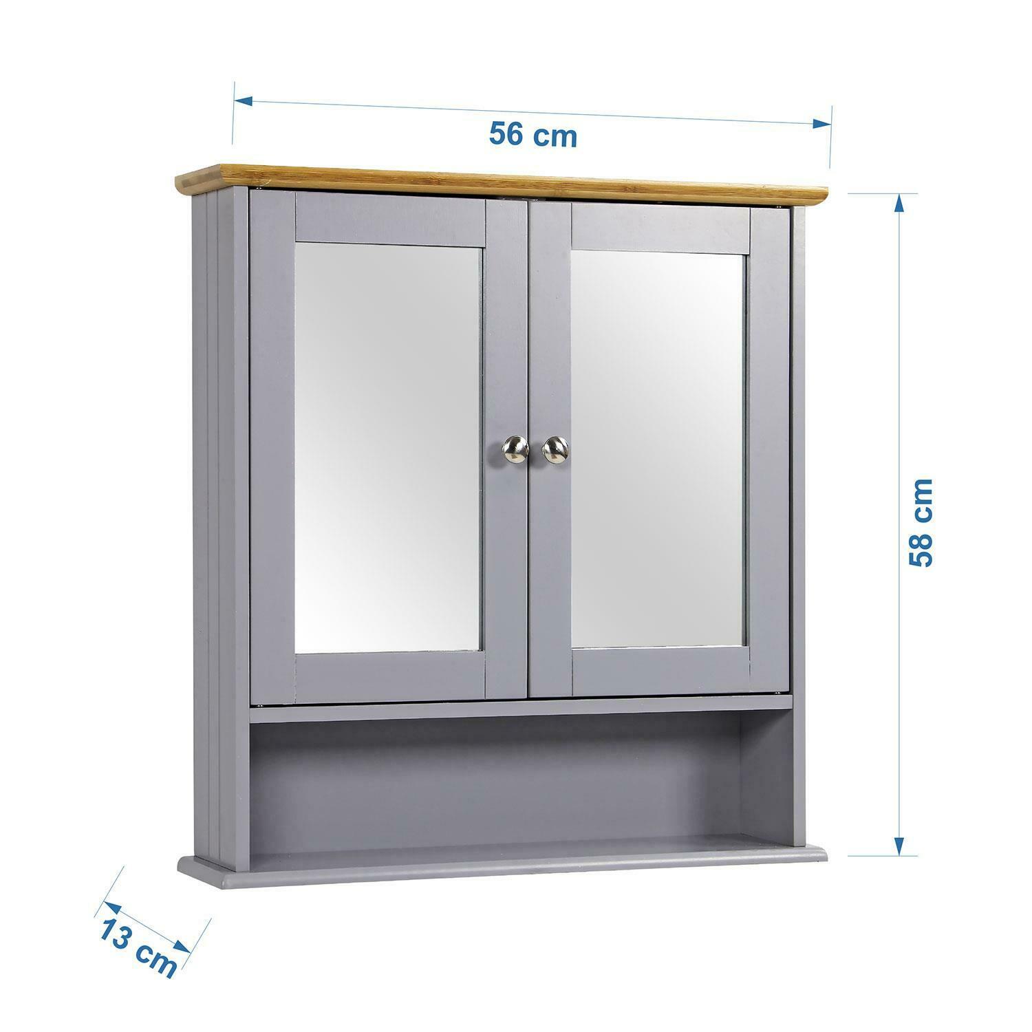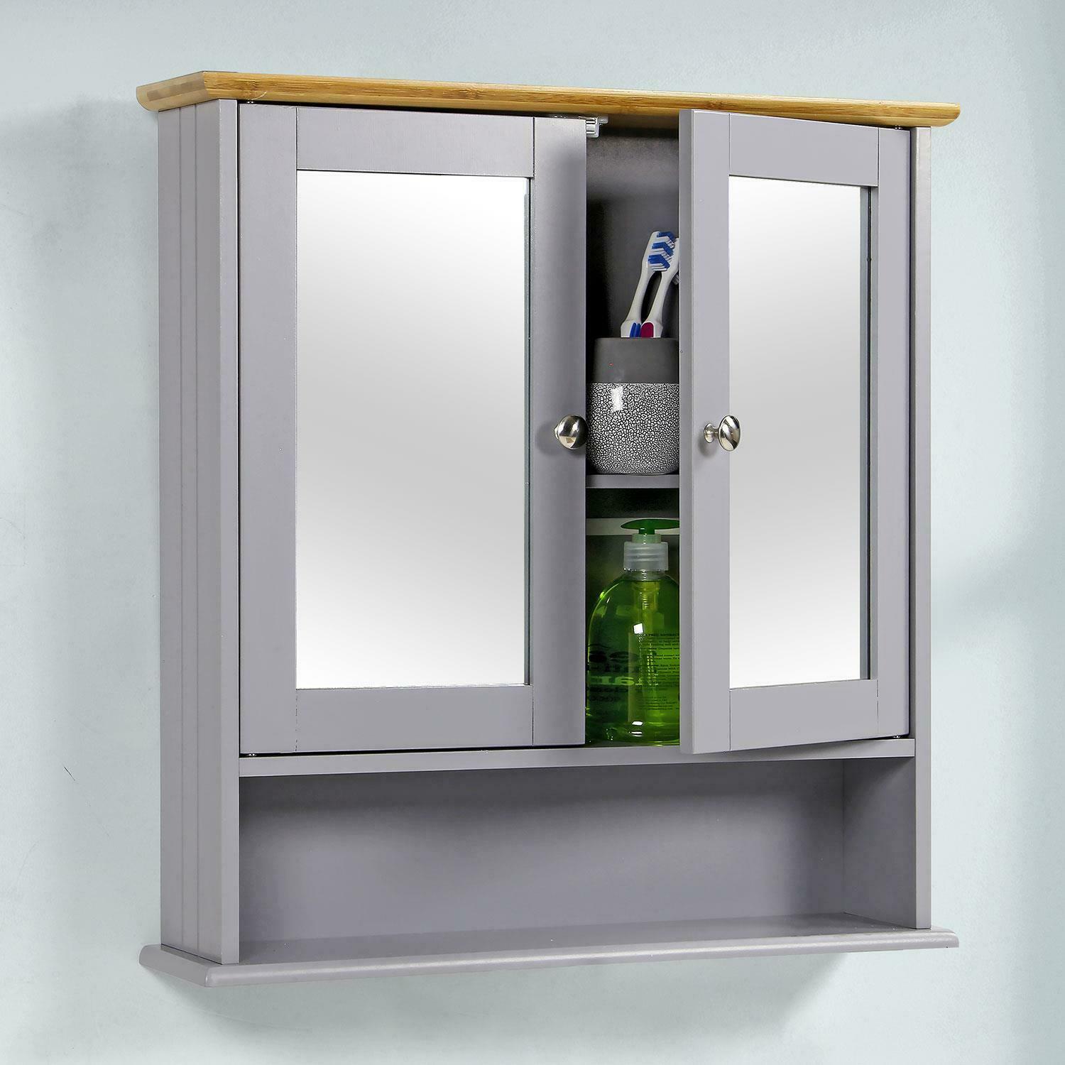 Bathroom Cabinet With Mirror Wall Mounted Grey Medicine Storage Cupboard Unit