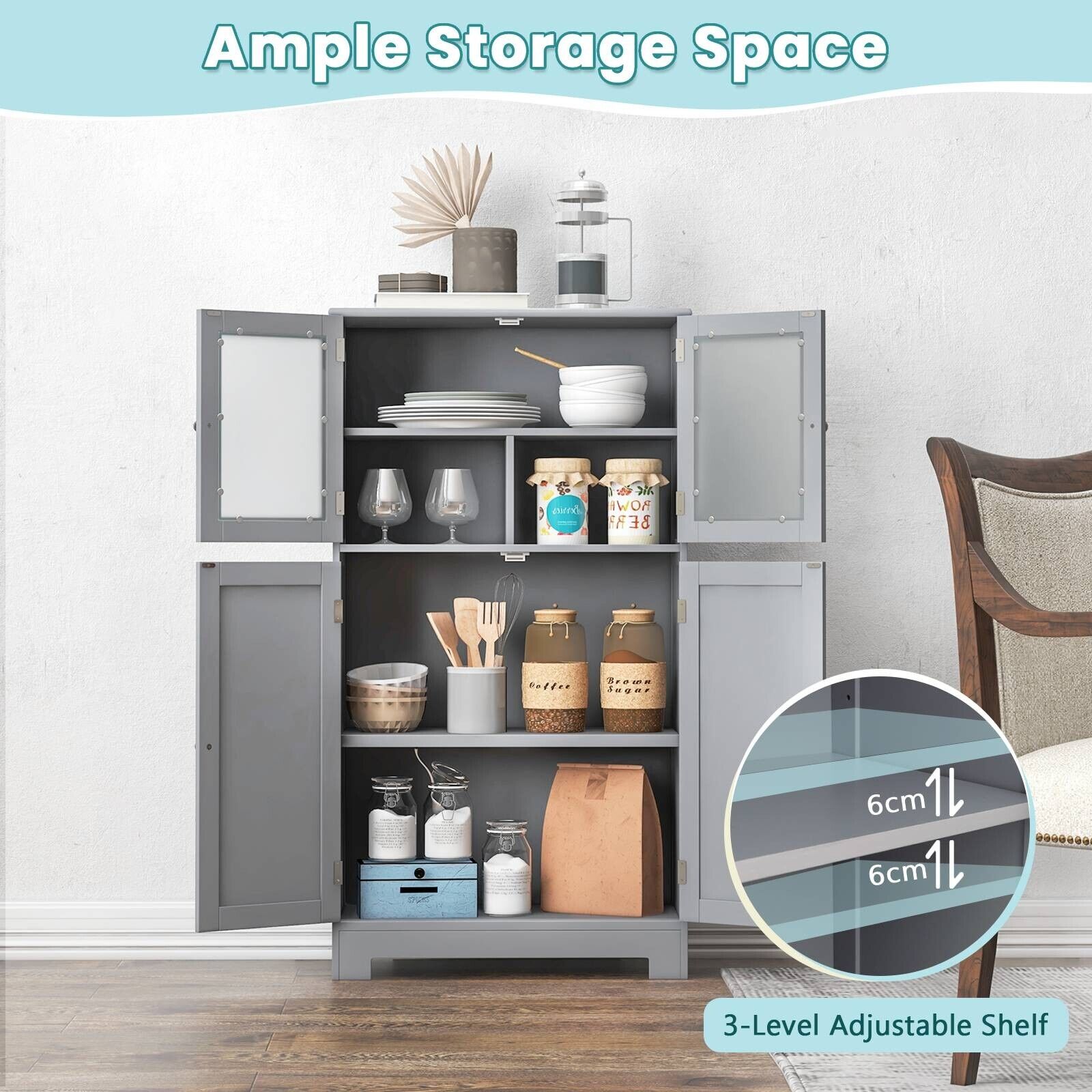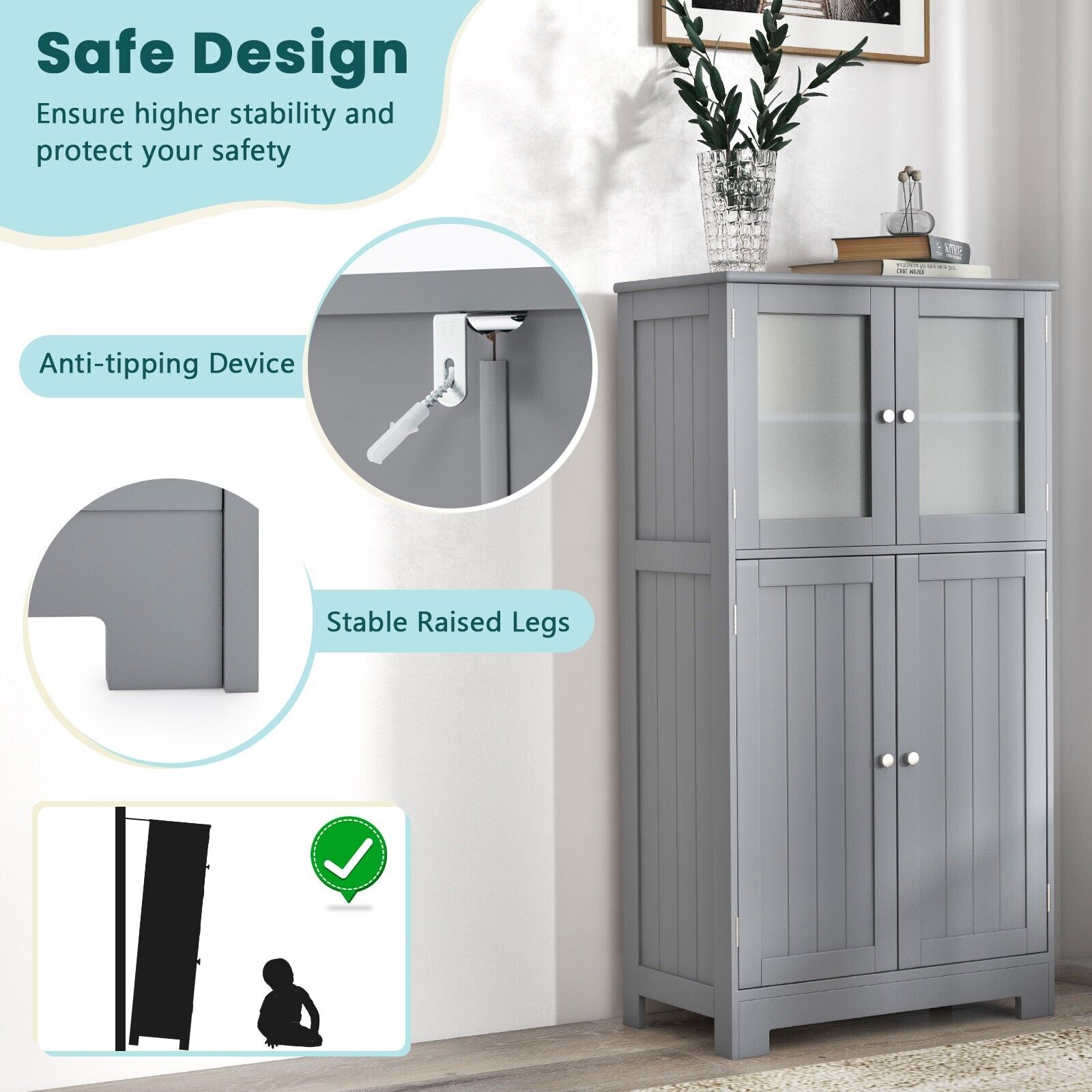 Bathroom Floor Cabinet Freestanding Storage Cupboard W/ 2 Tempered Glass Doors