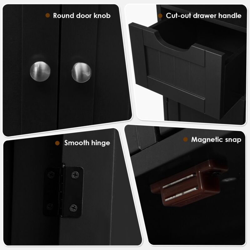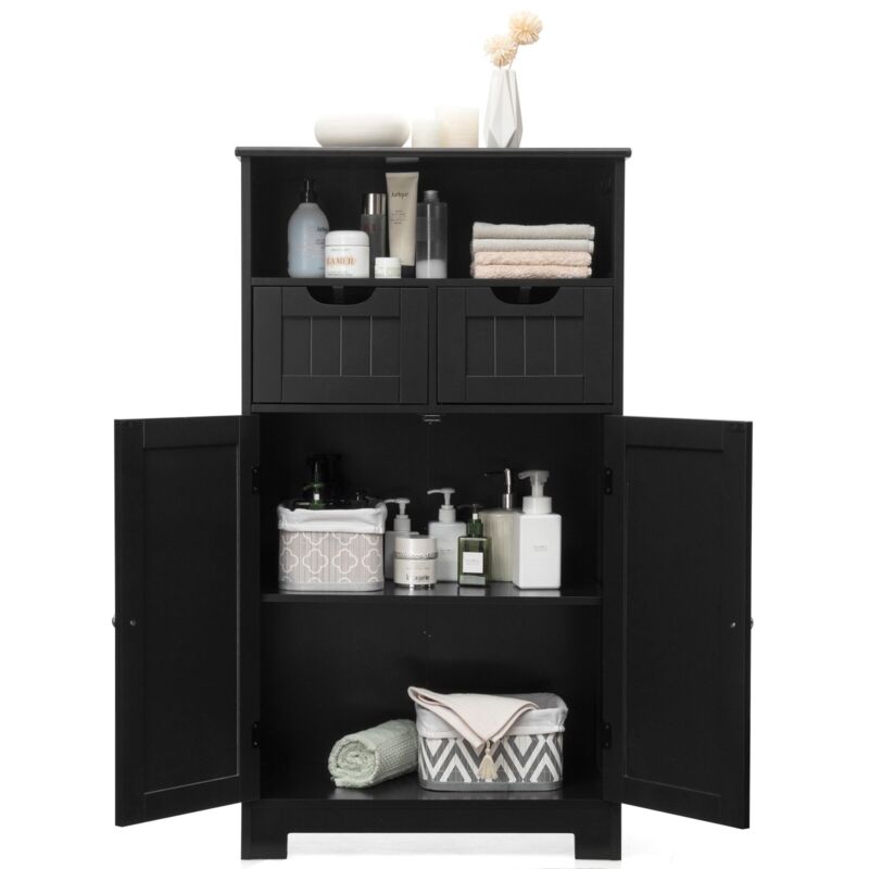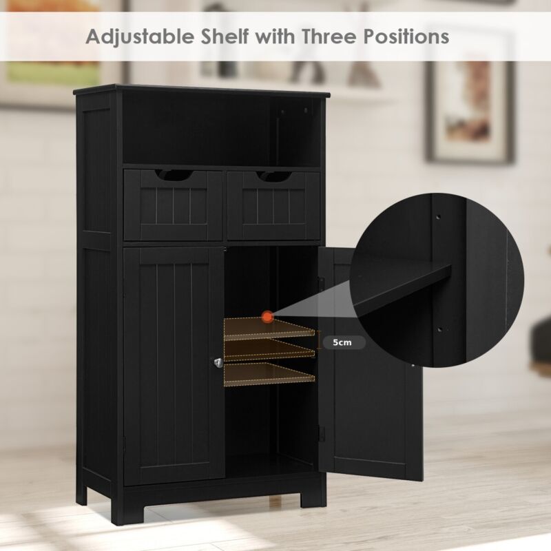 Bathroom Floor Cabinet Wooden Storage Cupboard with Adjustable Shelf & Doors