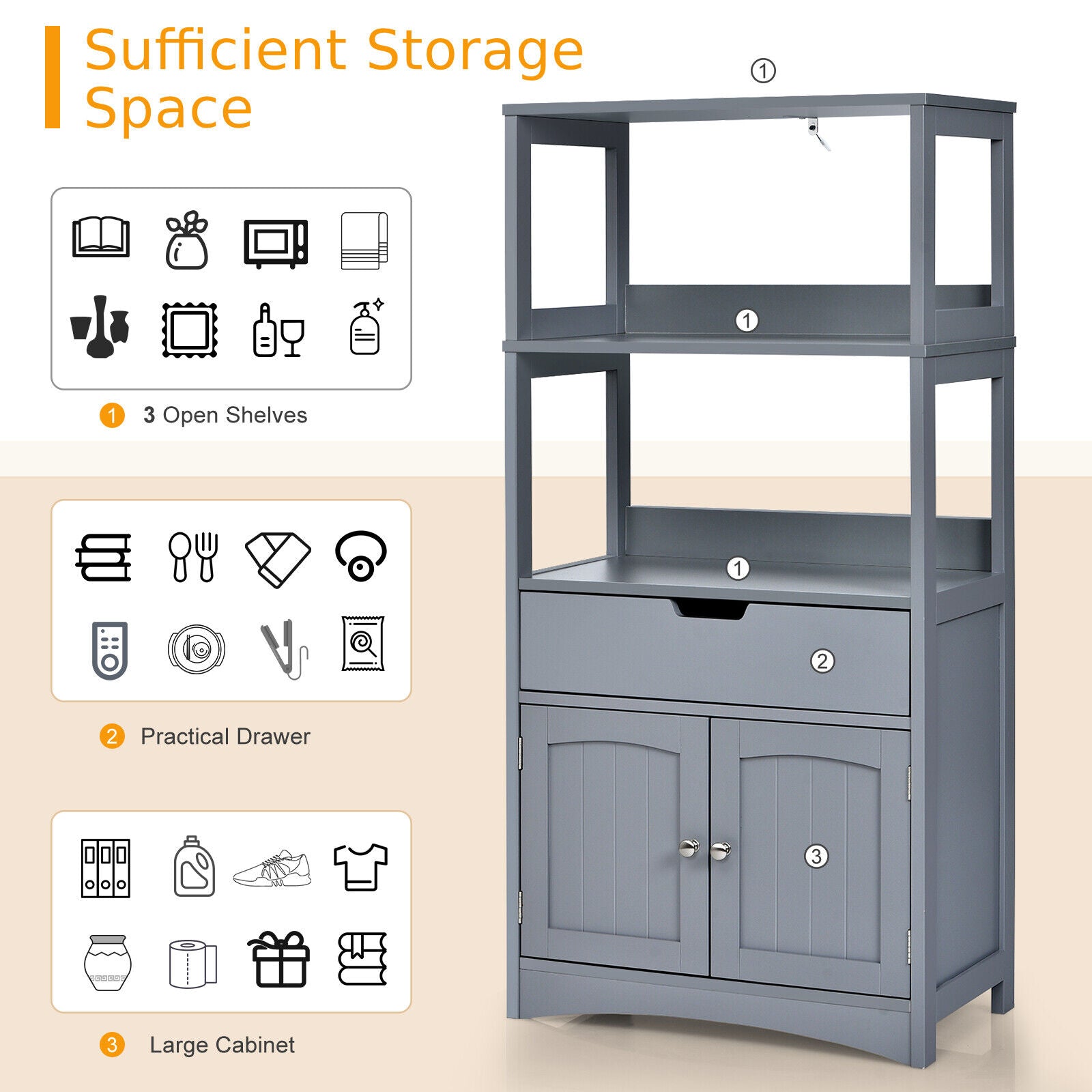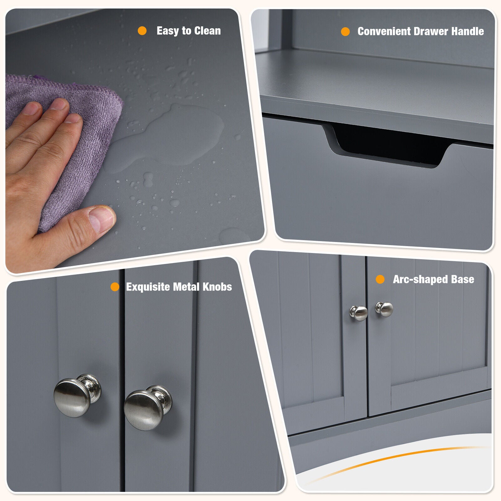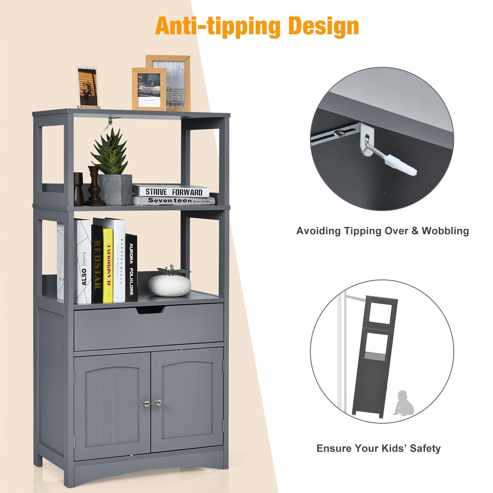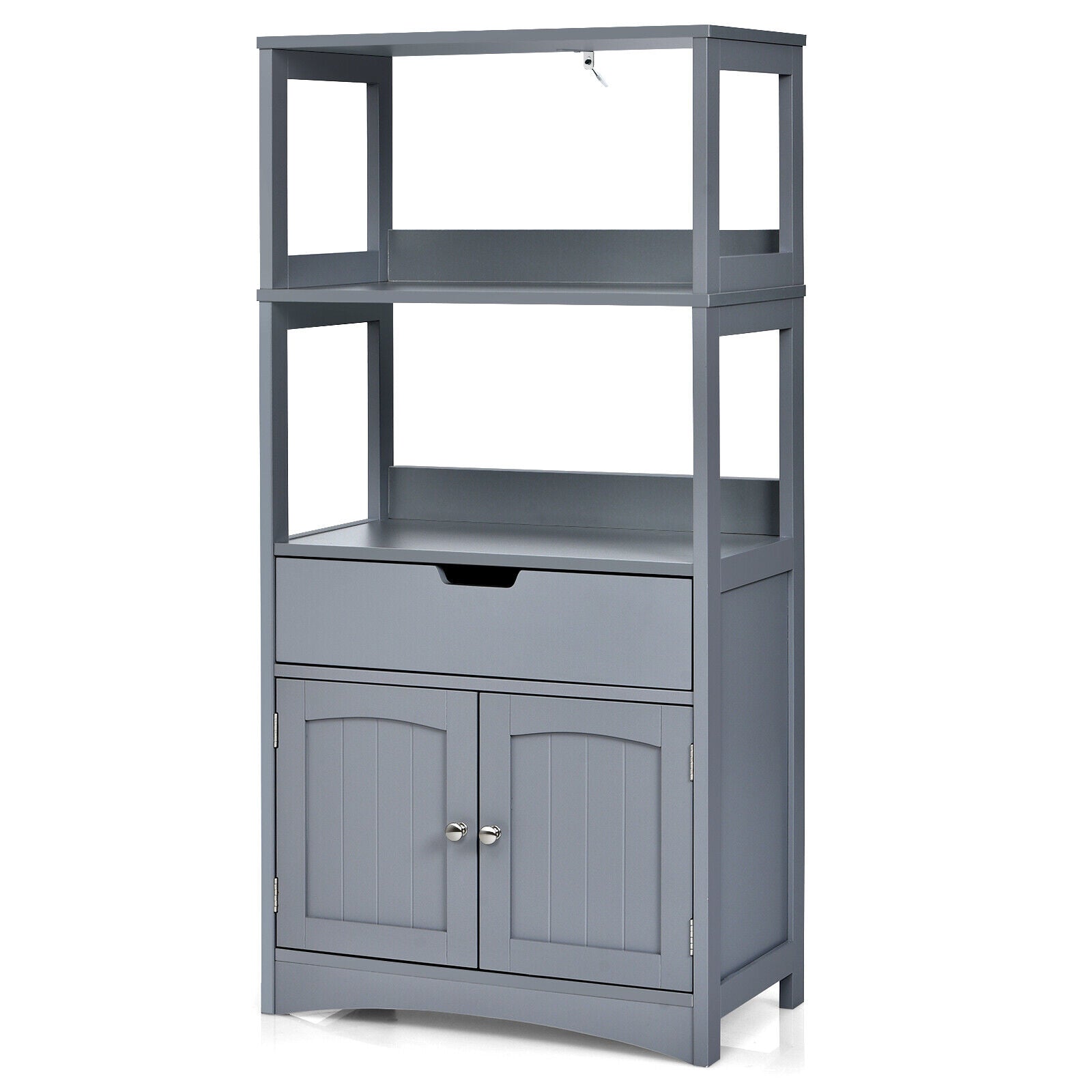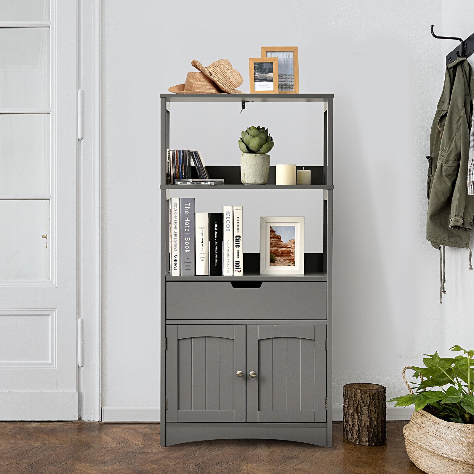Bathroom Floor Cabinet Wooden Tall Storage Cupboard Freestanding 2 Open Shelves
