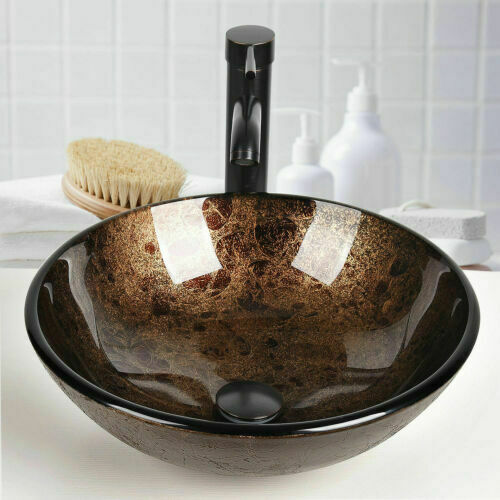 Bathroom Glass Counter Top Brown Basin Cloakroom Hand Wash Round Sink Modern UK