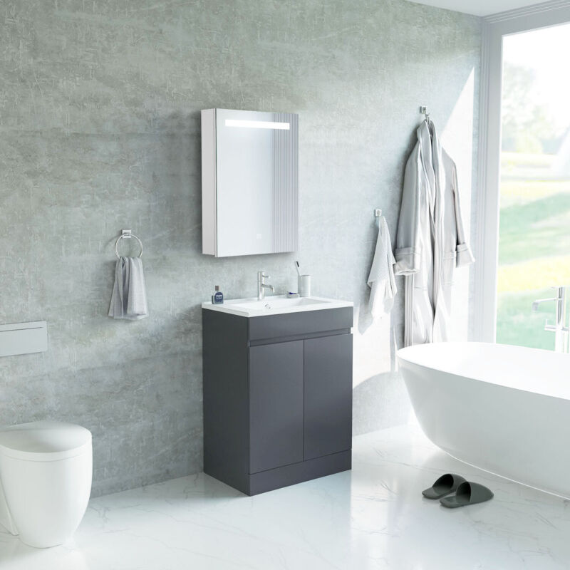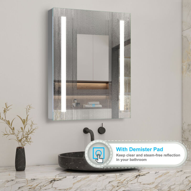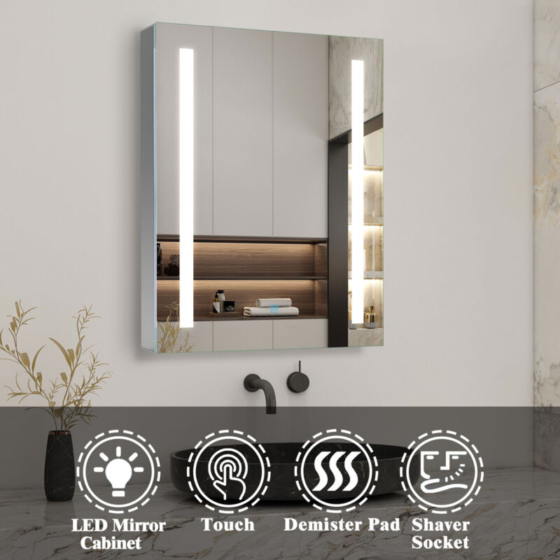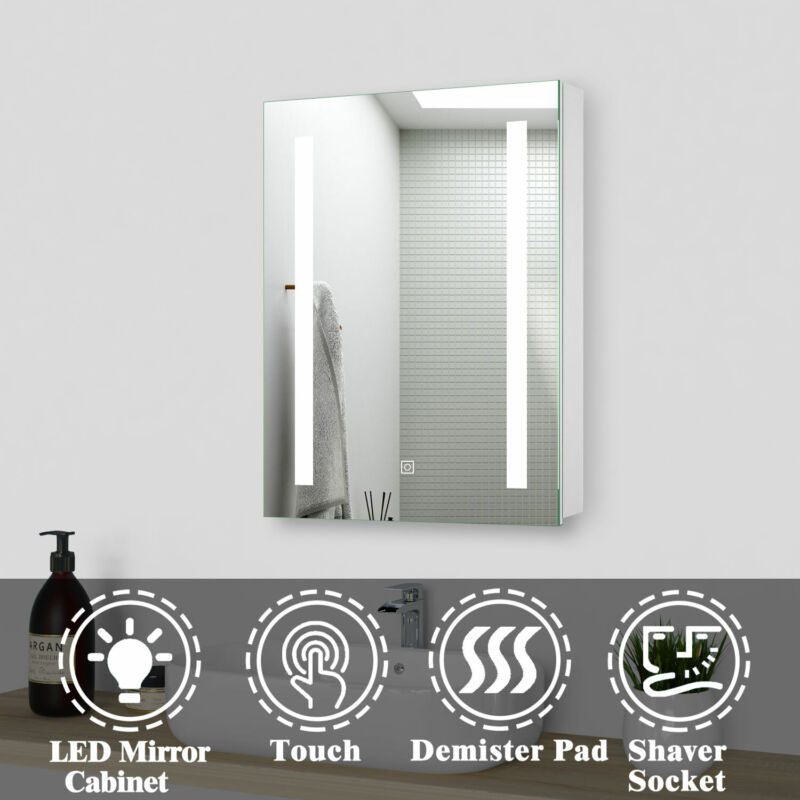 Bathroom Led Lighted Mirrored Cabinet with Shaver Socket Wall Hung Anti Mist