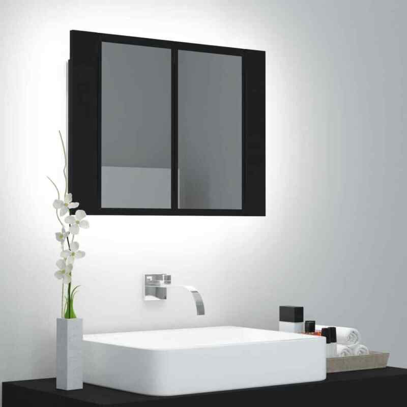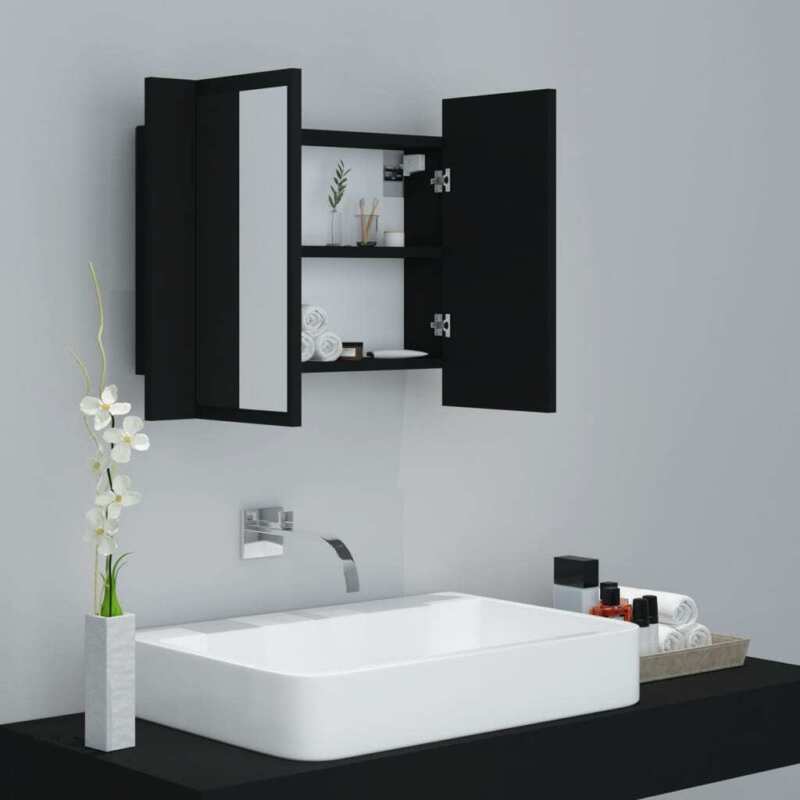 Bathroom LED Mirror Cabinet with 2 Storage Shelves Black Furniture 60x12x45 cm